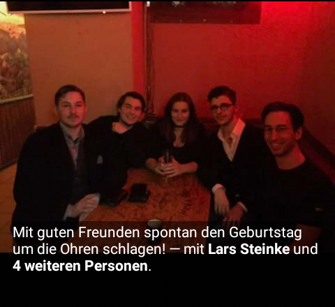 Lars Steinke (1.v.l.), Philippe Navarre (2.v.l.) und Robert Krüger-Zechlin (1.v.r.) am Geburtstag feiern in der „BiWi“