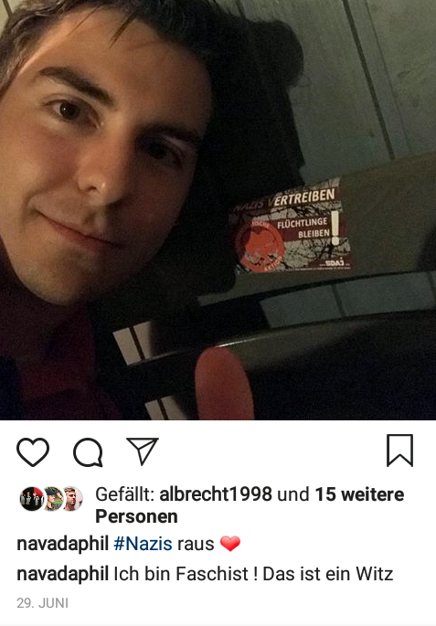 • Am 17. Juni 2017 an der IB-Demo in Berlin teilgenommen und dabei ein Schild mit der Aufschrift „JA+IB=<3“ hoch gehalten