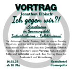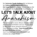 Kommt am 16.02.25 ab 18 Uhr ins Grandhotel Cosmopolis! Die Autonome Bande Auxburg lädt dazu ein den Abend in gemütlicher Atmosphäre dem Anarchismus zu widmen.Dazu gibt’s einen Vortrag von Jonathan Eibisch, Küfa, Getränke und im Anschluss noch genügend Zeit zum Reden, Austauschen und Vernetzten! Wir freuen uns darauf,Die Bande 🙂