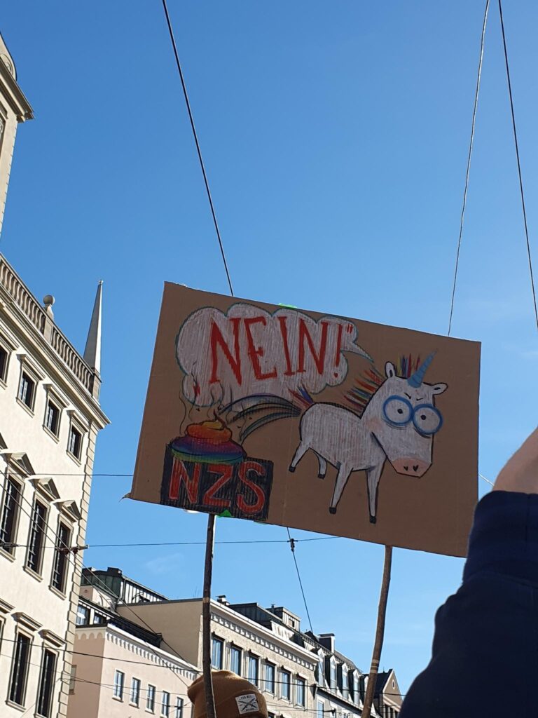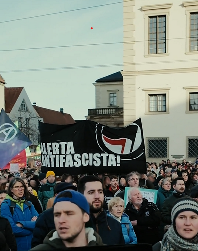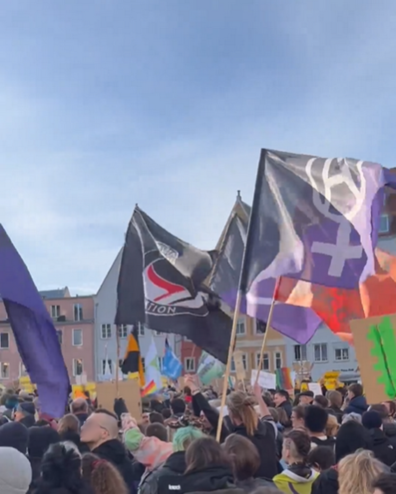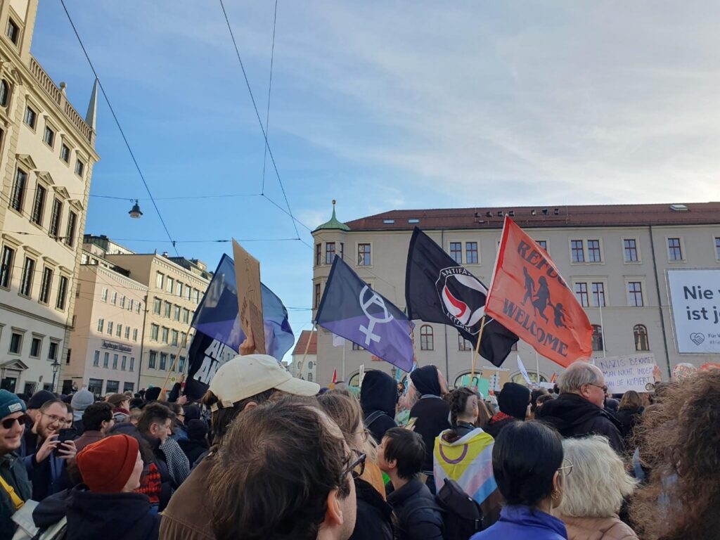Wundern darf mensch sich allerdings ob der Teilnahme und Reden vieler Politiker*innen weiterer Parteien. Zwar war an deren Reden vielleicht inhaltlich wenig auszusetzen, scheinheilig klingen sie trotzdem allemal. Wir fordern ihren angeblichen Kampf für Menschenrechte und die Würde und Freiheit aller Menschen dann doch endlich konsequent anzugehen, vor allem auch in ihrer eigenen Politik. Grüne, SPD, CDU/CSU, FDP und Freie Wähler sind es doch, die mit ihrer Abschiebe- und Sicherheitspolitik bereits jetzt und seit jeher Leid über unzählige Menschen bringen und ihre am Samstag propagierten Werte selber mit Füßen treten. Die Strategie, der rechten Wähler*innenschaft hinterherzueifern, scheint zumal nicht im Ansatz zu funktionieren: Die AfD wird seit Jahren durch diesen Kurs nur stärker und stärker.