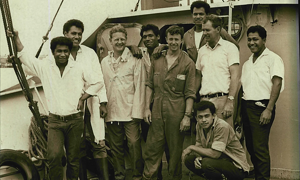 Pero Peter notó algo extraño: mirando a través de sus binoculares, vio parches quemados en los acantilados verdes. «En los trópicos es inusual que los incendios empiecen espontáneamente», nos dijo medio siglo después. Entonces vio a un niño; desnudo; con el pelo hasta los hombros. Esta criatura salvaje saltó del acantilado y se sumergió en el agua; de repente, más niños lo siguieron, gritando a todo pulmón. No pasó mucho tiempo hasta que el primer niño llegó al bote. «Mi nombre es Stephen», gritó en perfecto inglés. «Somos seis, y creemos que hemos estado aquí 15 meses». Los niños, una vez a bordo, afirmaron que eran estudiantes de un internado en Nukualofa, la capital de Tonga. Cansados de las comidas escolares, habían decidido tomar un bote de pesca un día, para luego quedar atrapados en una tormenta. Una historia muy probable, pensó Peter; usando su radio bidireccional, llamó a Nukualofa. «Tengo seis hijos aquí», le dijo al operador. «Espere un momento», fue la respuesta. Pasaron veinte minutos (cuando Peter cuenta esta parte de la historia, se le nublan los ojos). Finalmente, un operador llamó por radio llorando, y dijo: «¡Los encontraste! Estos muchachos han sido dados por muertos; se celebraron incluso sus funerales. Si son ellos, ¡esto es un milagro! En los meses siguientes, intenté reconstruir con la mayor precisión posible lo que había sucedido en ‘Ata. La memoria de Peter resultó ser excelente; incluso a la edad de 90 años, todo lo que relataba era coherente con mi otra fuente principal, Mano, de 15 años en ese momento y ahora con 70, quien vivía a unas pocas horas en coche de la casa de Peter. «El verdadero Señor de las Moscas —nos dijo Mano— empezó en junio de 1965». Los protagonistas fueron seis niños: Sione, Stephen, Kolo, David, Luke y Mano, todos alumnos de un estricto internado católico en Nukualofa. El mayor tenía 16 años, y el más joven 13, y tenían una cosa principal en común: estaban aburridos. Entonces, idearon un plan para escapar a Fiji, a unos 800 km [500 millas] de distancia, o incluso hasta Nueva Zelanda. Sólo había un obstáculo: ninguno de ellos era dueño de un bote, así que decidieron «tomar prestado» uno del señor Taniela Uhila, un pescador que no le agradaba a ninguno de ellos. Los niños tomaron poco tiempo para prepararse para el viaje; dos sacos de plátanos, unos pocos cocos y un pequeño quemador de gas, fueron todos los suministros que empacaron; ninguno de ellos pensó en llevar un mapa, y mucho menos una brújula.