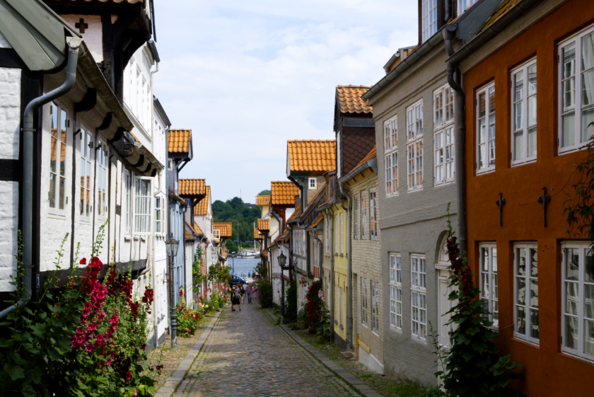 Wir sehen ehemalige Handelshäuser für Rum, jetzt (wahrscheinlich expensiver) Wohnraum mit Gewächs an den Türen.