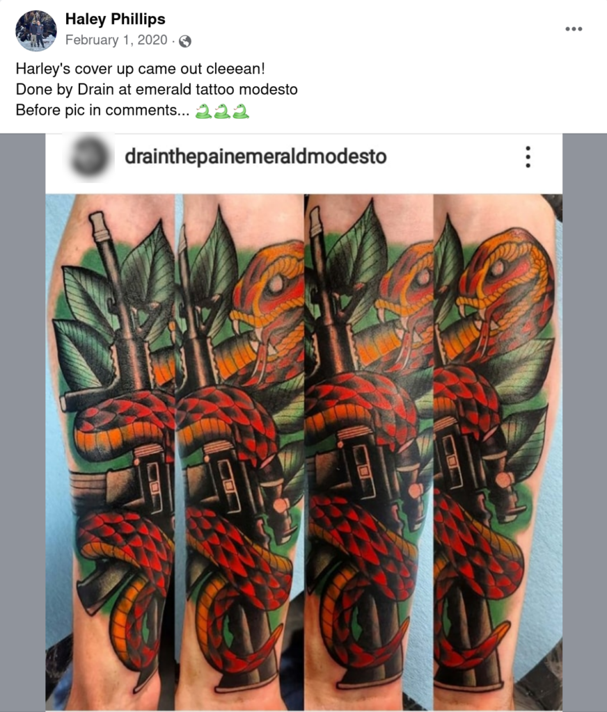 Tattoos visible on Scottie BigBalls’ Odysee profile compared against photos posted on Haley “Halez” Phillips’ Facebook profile of her husband, confirm Harley Ray Petero Jr.’s identity as “Scotty”. Phillips’ social media history further confirmed “Scottie” as Petero’s alias when she documented his cover-up of an Insane Clown Posse “hatchetman” tattoo.