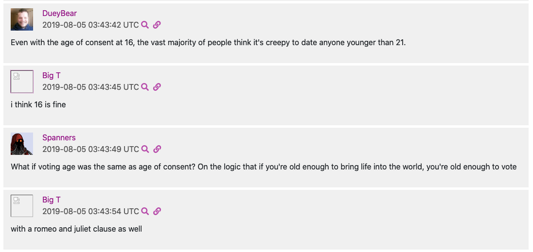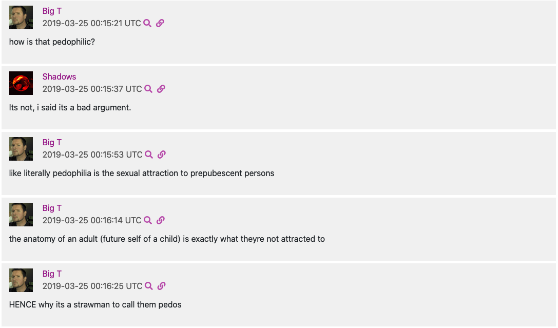 “HENCE why its a strawman to call them pedos,” Morrissey carrying on the Libertarian tradition of dying on the hill of the demarcation of ephebophilia and pedophilia regarding a discussion of free speech on Gab and “Lolicon” pornography.