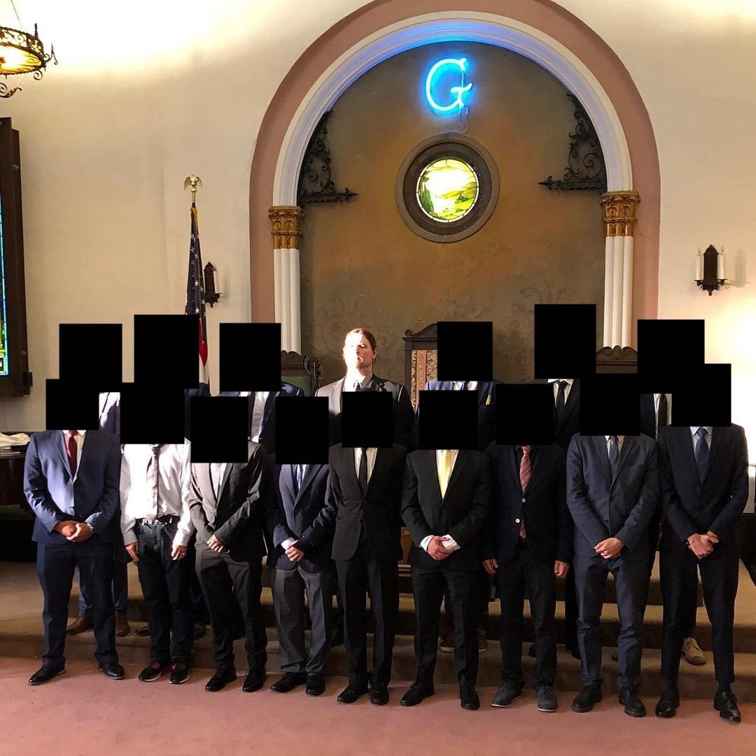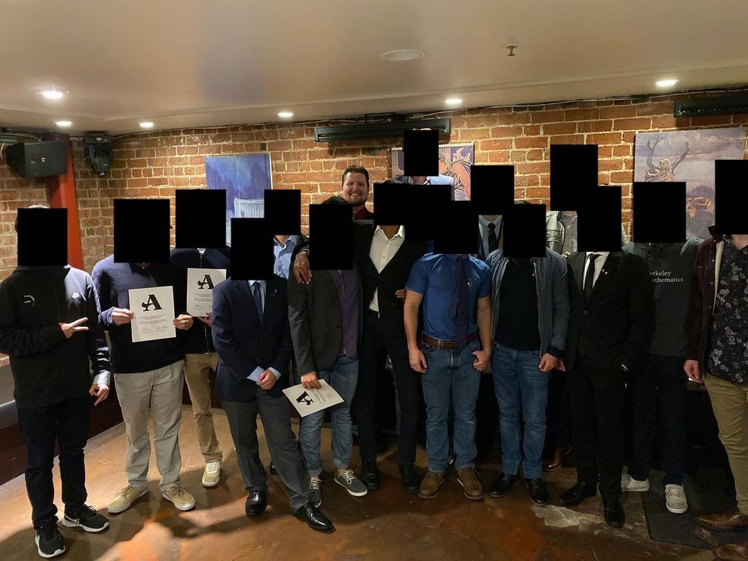 Travis Morrissey poses with members of the re-founded Berkeley Acacia fraternity chapter at a Masonic Lodge. Morrissey claims that “under my leadership the ranks grew to 30 members” and claims to have “mentored underclassmen in an unofficial capacity with regards to their computer science coursework”. For the duration of his time at UC Berkeley Morrissey was a member of the white nationalist Matt Christiansen and Rebecca Hargreaves “Call-In Show” Discord.