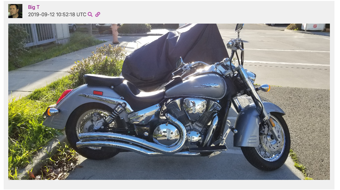 He drives a grey 2005 Honda VTX1300S motorcycle CA License #: 18H2636 and a Blue Kawasaki Ninja motorcycle CA License #: 23P0493.