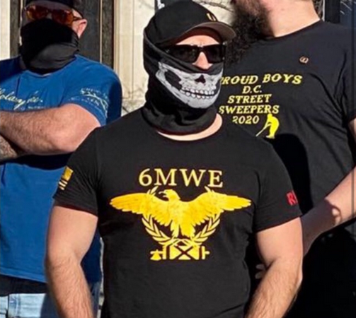 11. RWDS Right Wing Death Squad/6MWE: Right Wing Death Squad and Six Million (Jews) Wasn’t Enough. Two slogans and acroynms associated with the Proud Boys spotted at recent protests in the Pacific Northwest and in DC at StopTheSteal protests. RWDS is also a common ideological concept of the alt-right which idealizes the murder of communists, anarchists, and other leftists and draws heavily from the White supremacist concept of “Day of the Rope” referencing mass lynching and a supposed race war.