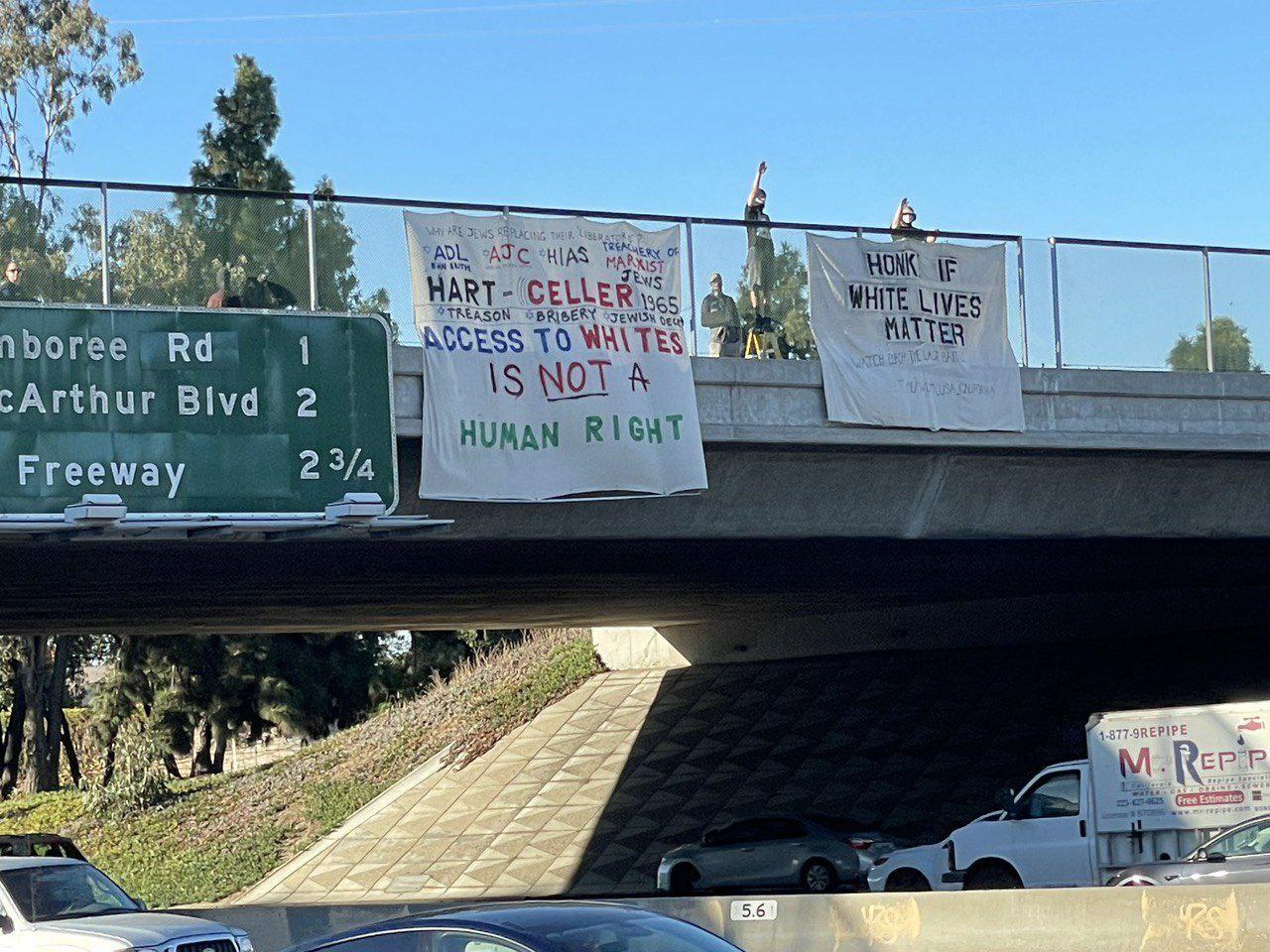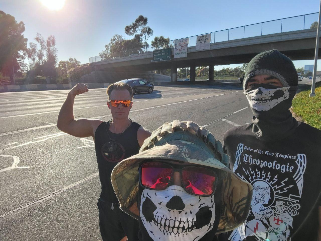 An “Aryan Bacon” stream on Omegle where Wilson attempts to “redpill” two young girls into adopting genocidal white supremacist beliefs.“Aryan Bacon” joins Shaun Mulville (Ventura) and Robert Wheldon (San Diego) for a White Lives Matter banner drop.