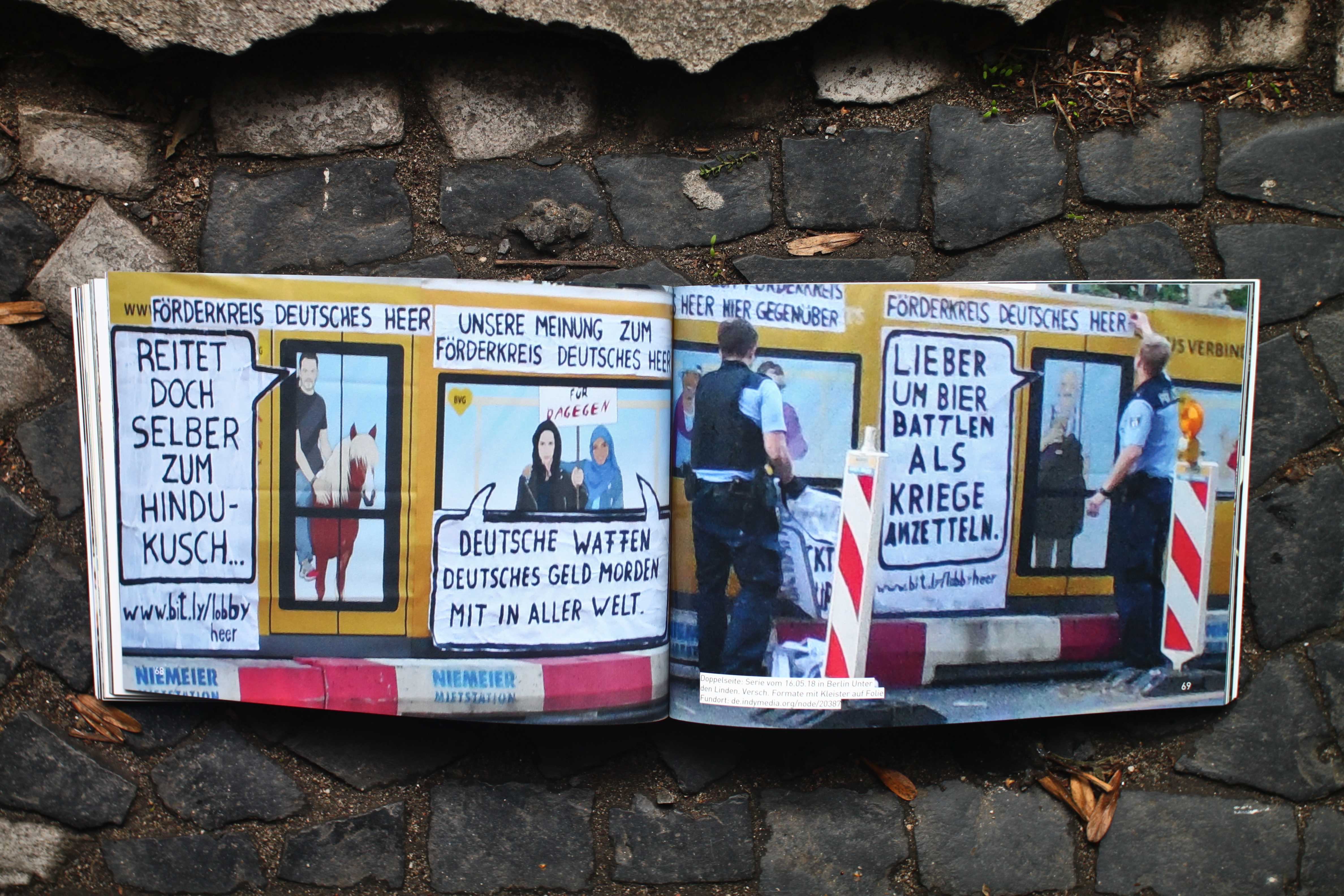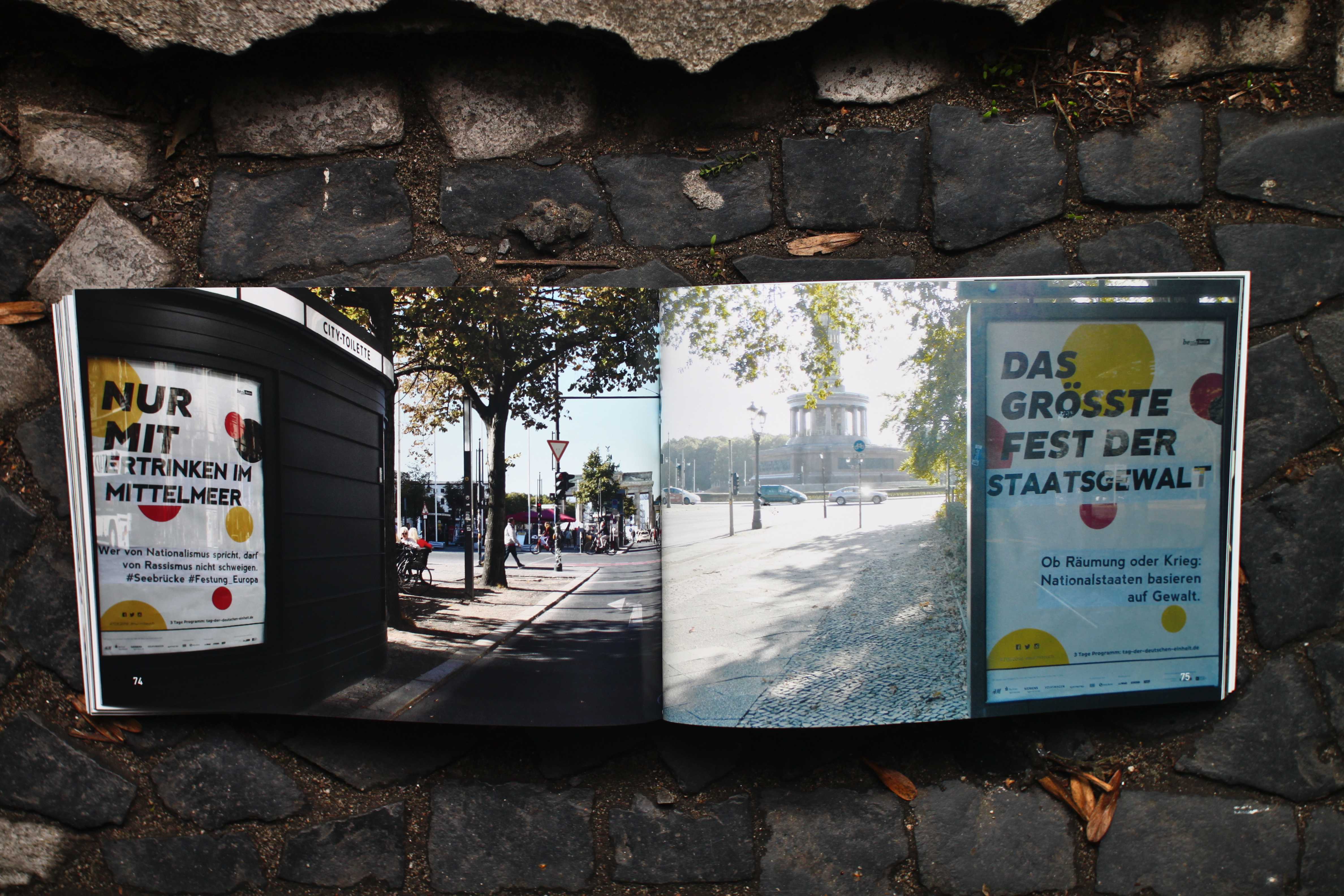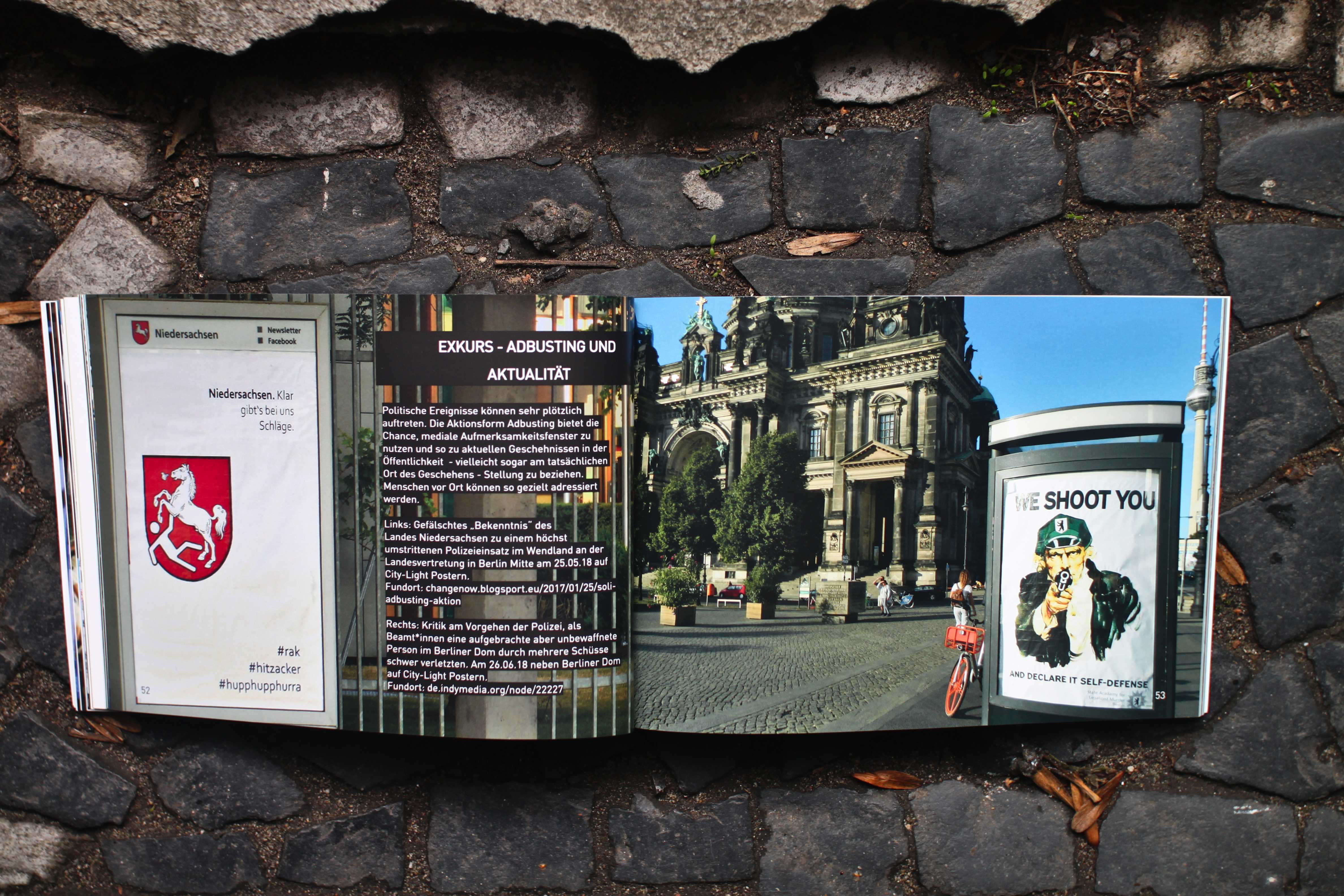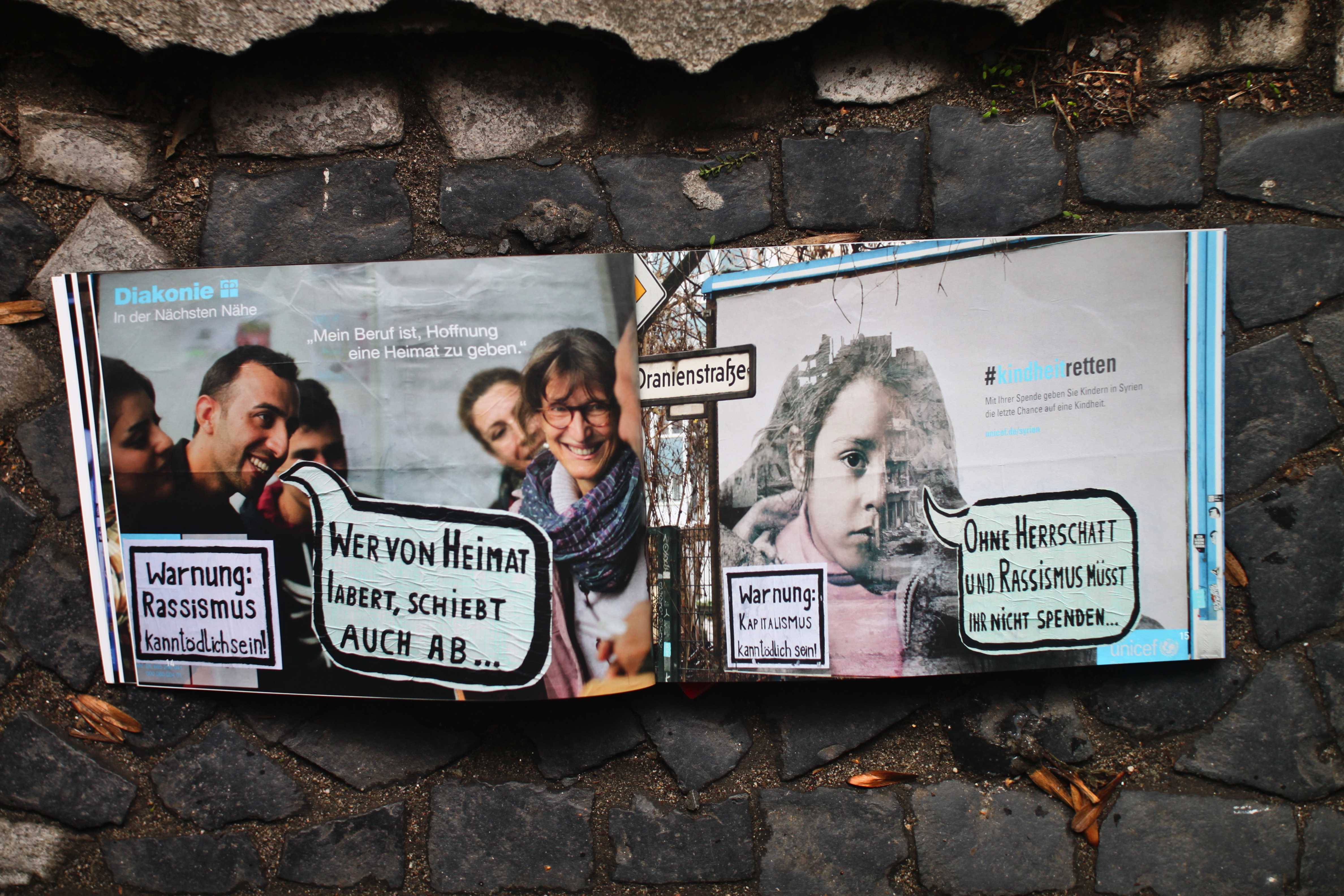 Anfang 2019 erschien im Selbstverlag die erste Ausgabe von „Unerhört! Adbusting gegen die Gesamtscheiße“. Das ganze Jahr 2019 waren einige Leute vom Berlin Buster’s Social Club damit beschäftigt, auf über 70 Veranstaltungen mit Interessierten Bilder zu gucken, sich durch Sterni-Alternativen von anderswo zu kosten und den deutsschprachigen Raum jenseits des S-Bahnrings anzugucken. Ohne Vertriebsstruktur im Rücken haben wir mehr als 600 Bücher vertickt. Wir haben viele Leute getroffen, die sich der Gesamtscheiße da draußen widersetzen und das hat Mut gemacht.