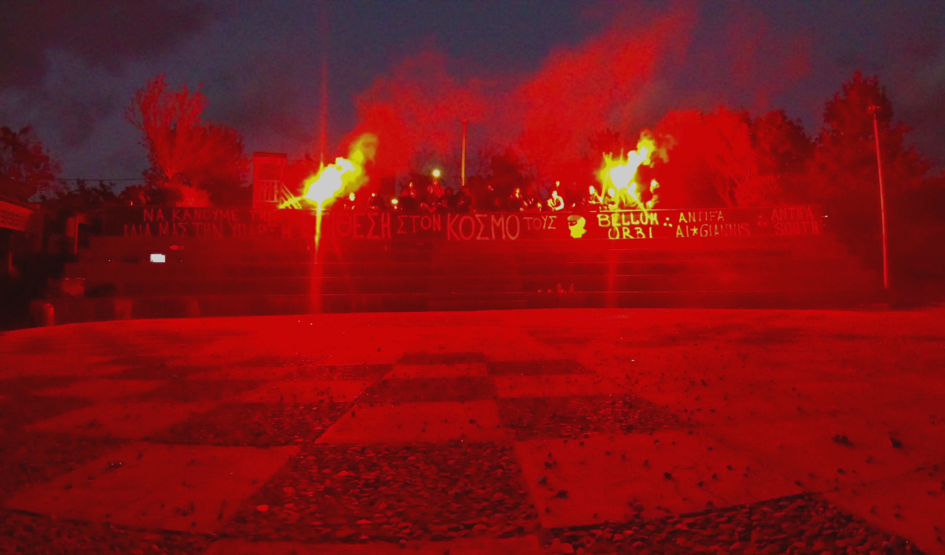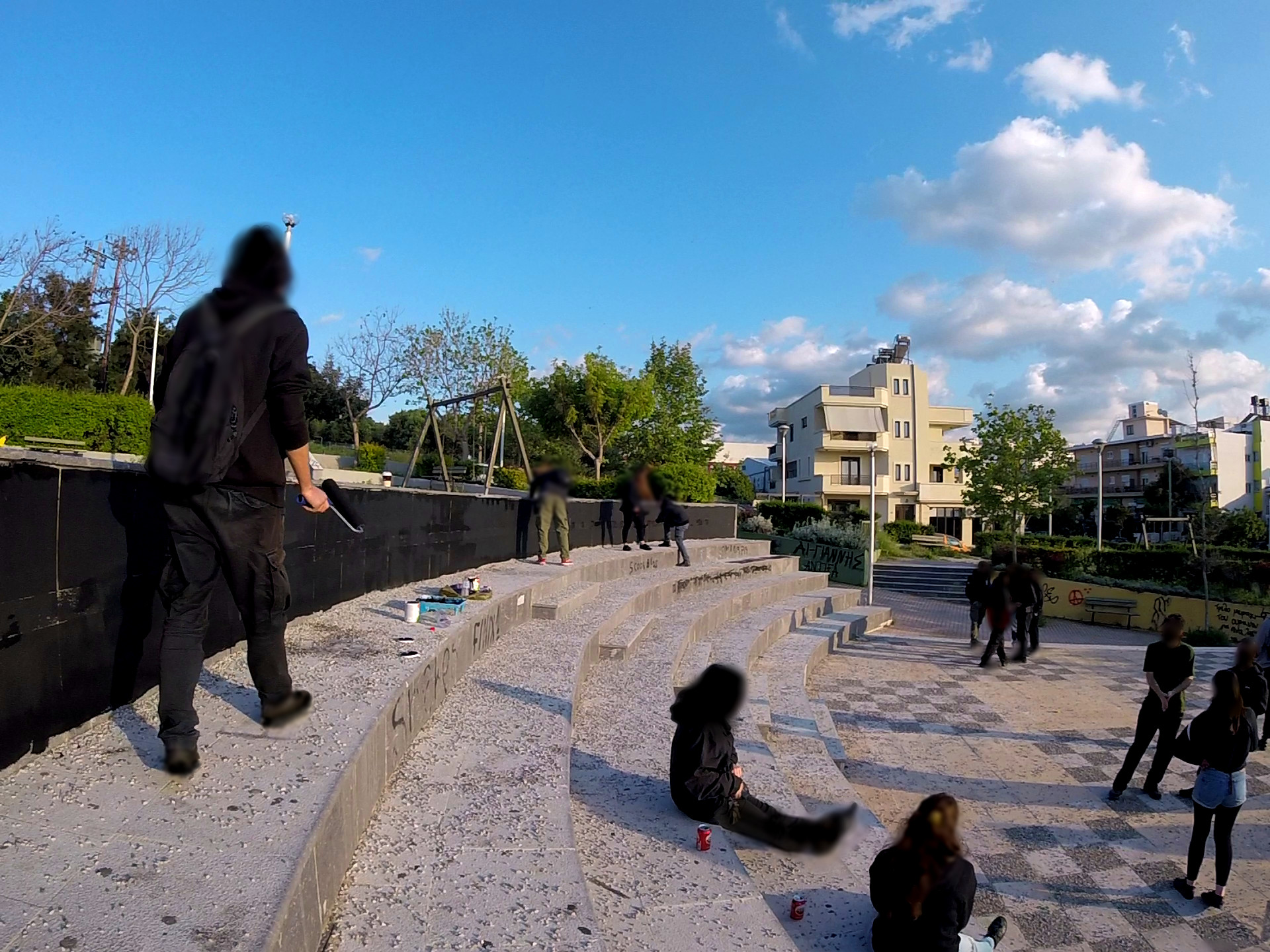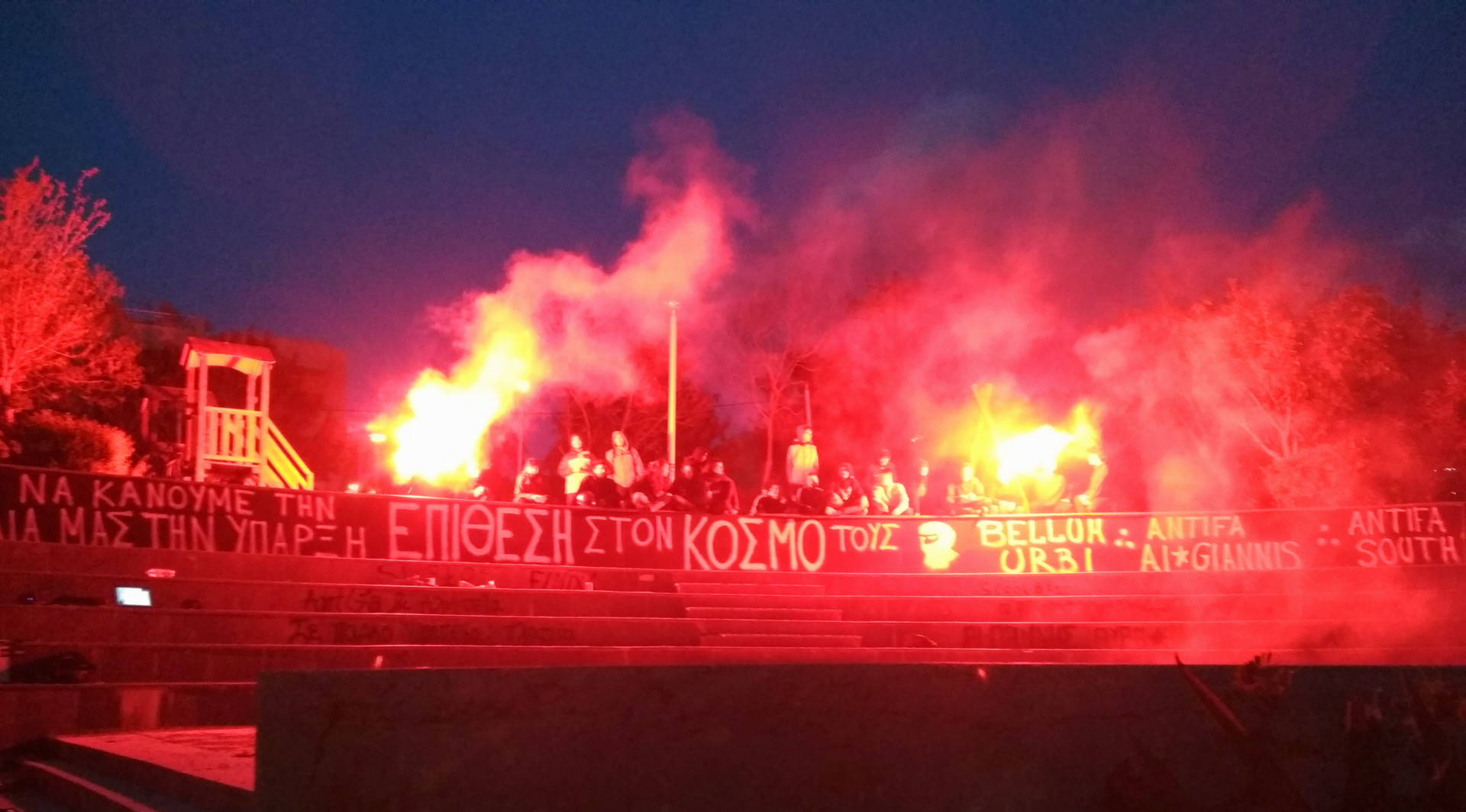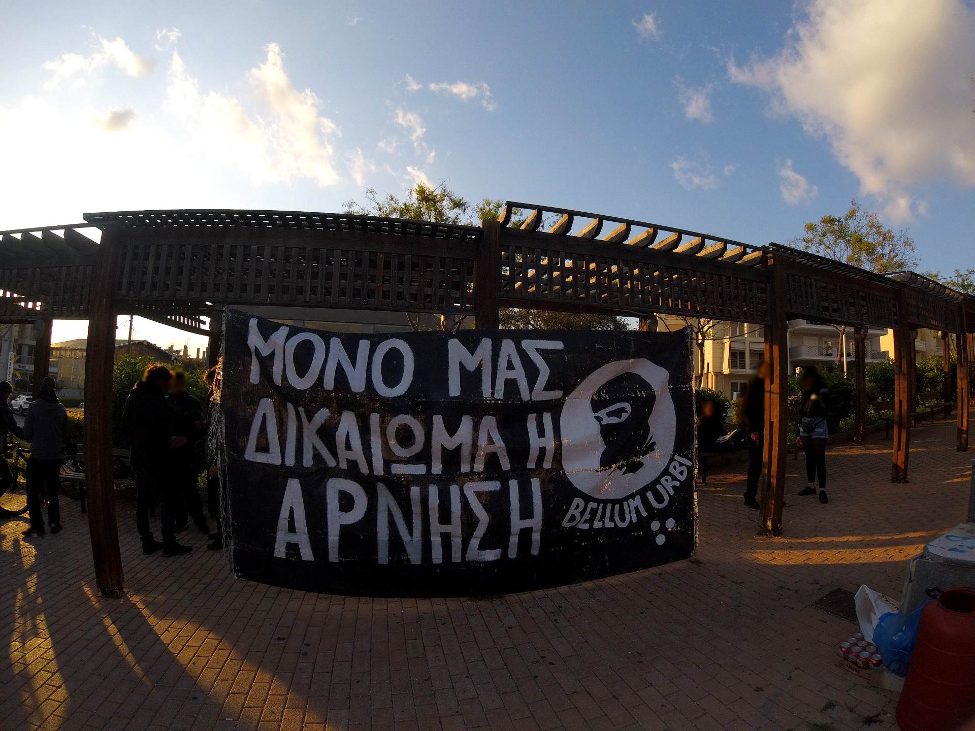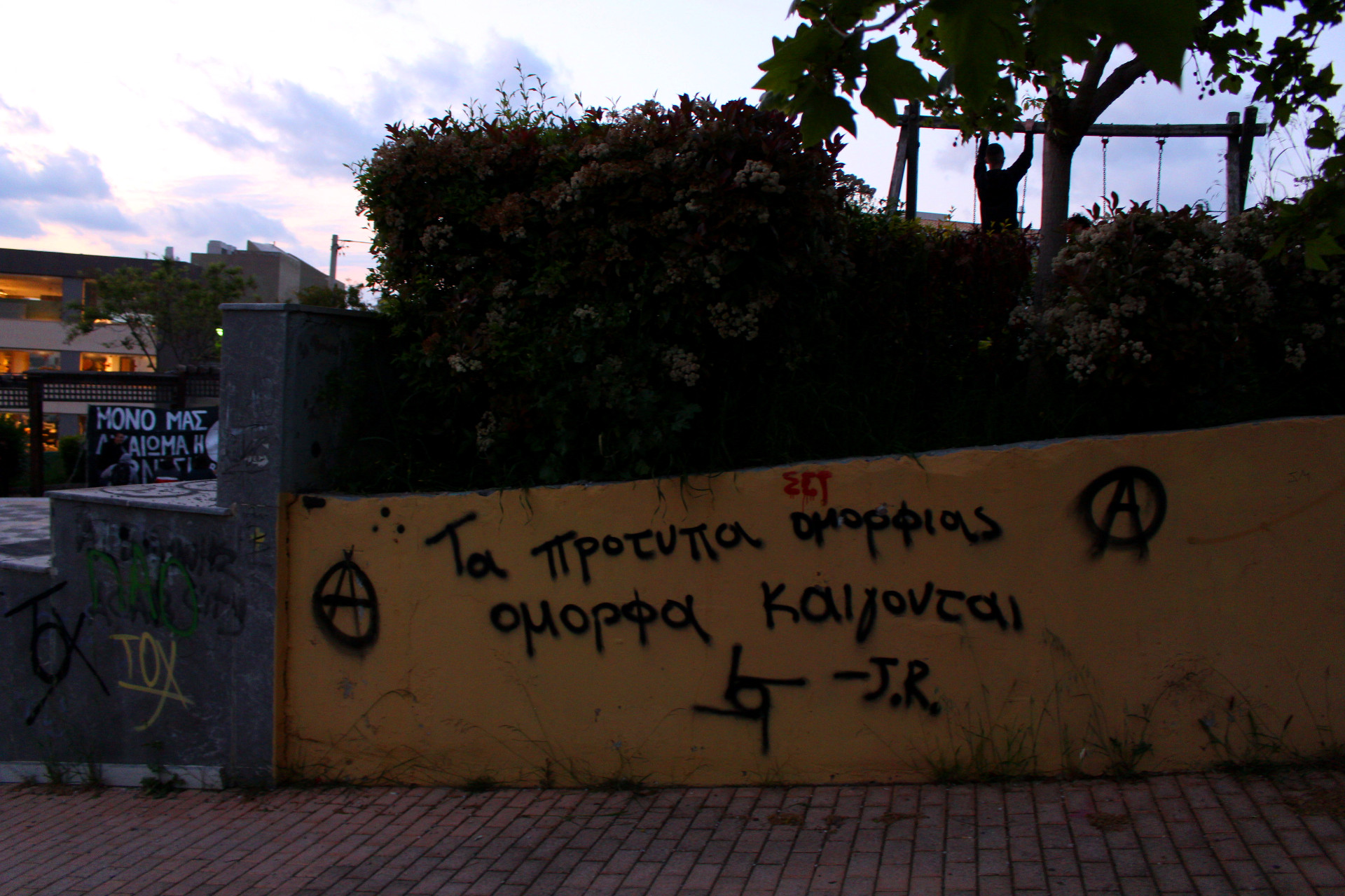 Όποιος/α ζει και περπατάει στην πόλη δεν είναι δύσκολο να αντιληφθεί ότι το κράτος, τα αφεντικά και οι μικροαστοί ιδιοκτήτες επιδιώκουν το μονοπώλιο στο δημόσιο χώρο, θέλοντας να κάνουν την πόλη ένα απέραντο νεκροταφείο καταναλωτών. Γεμίζουν τις γειτονιές μας με μπάτσους, ασπρίζουν τους τοίχους, κάνουν αβάντα στους φασίστες και μετατρέπουν τις πλατείες σε εμπορικούς χώρους πλήρως επιτηρούμενους. Μας λένε να βγάλουμε τον σκασμό και να κάτσουμε ήσυχοι. Εμείς από την άλλη δεν ψηνόμαστε ιδιαίτερα πολύ. Προσπαθούμε να σπάσουμε με κάθε ευκαιρία αυτή την ησυχία. Τα βαψίματα στους τοίχους, τα αυθόρμητα αράγματα, οι συγκρούσεις με τους μπάτσους στο δρόμο και οι πορείες στις γειτονιές είναι οι δικές μας στιγμές έξω και ενάντια σε ό,τι μας επιβάλλουν. Είναι η δική μας συλλογική απάντηση στη μάχη για το δημόσιο χώρο. Μια μάχη που δεν σκοπεύουμε να χάσουμε.
