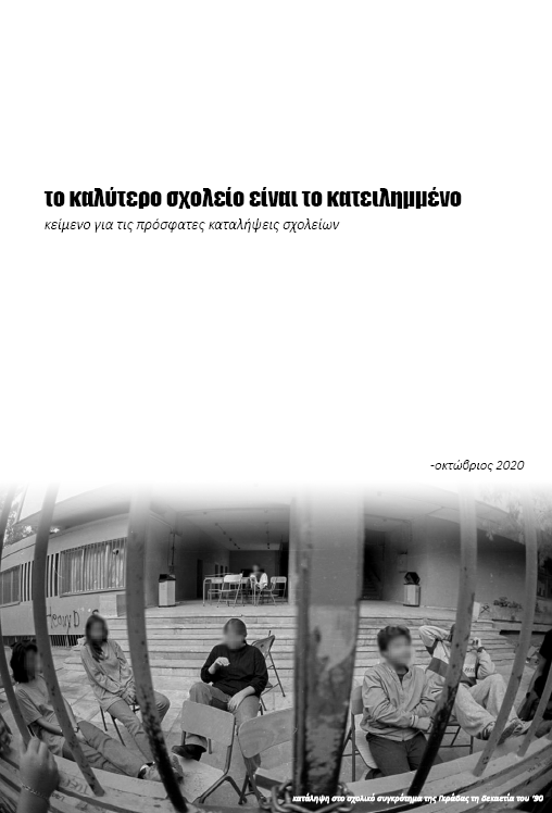 Κείμενο που τυπώθηκε σε 400 αντίτυπα και μοιράστηκε στο 8ο και 4ο ΓΕΛ Ηρακλείου (Αϊ Γιάννης και Θέρισσος) με τη βοήθεια συντροφισσών και συντρόφων, σχετικά με τις καταλήψεις σχολείων.