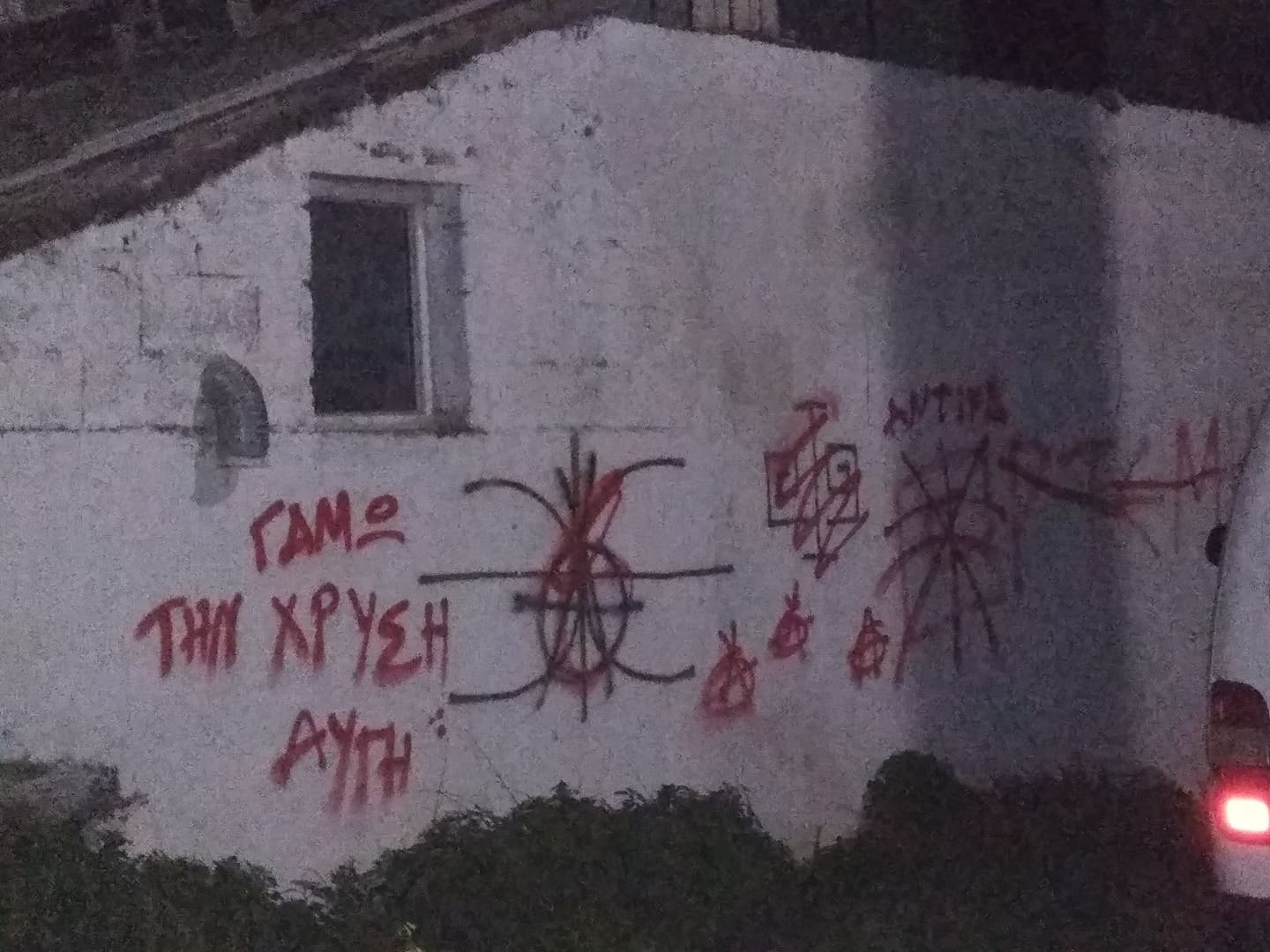 *Ψειρισμένα προεκλογικά πανό Σωρραίων και γράψιμο στα γραφεία τους