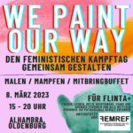 [DE, ENG below] (Queer)Feministische Kämpfe fighten wir jeden Tag – und am 8. März ganz besonders. Dabei schwingen wir auch den Maler*innen Pinsel an der Fassade des Alhambras und verankern unsere feministischen Botschaften für jeden Tag im Stadtbild. Außerdem gibt es ein Mitbringbuffet, wer Lust hat, kann gerne was zum Naschen mitbringen 🙂 Wir wollen […]