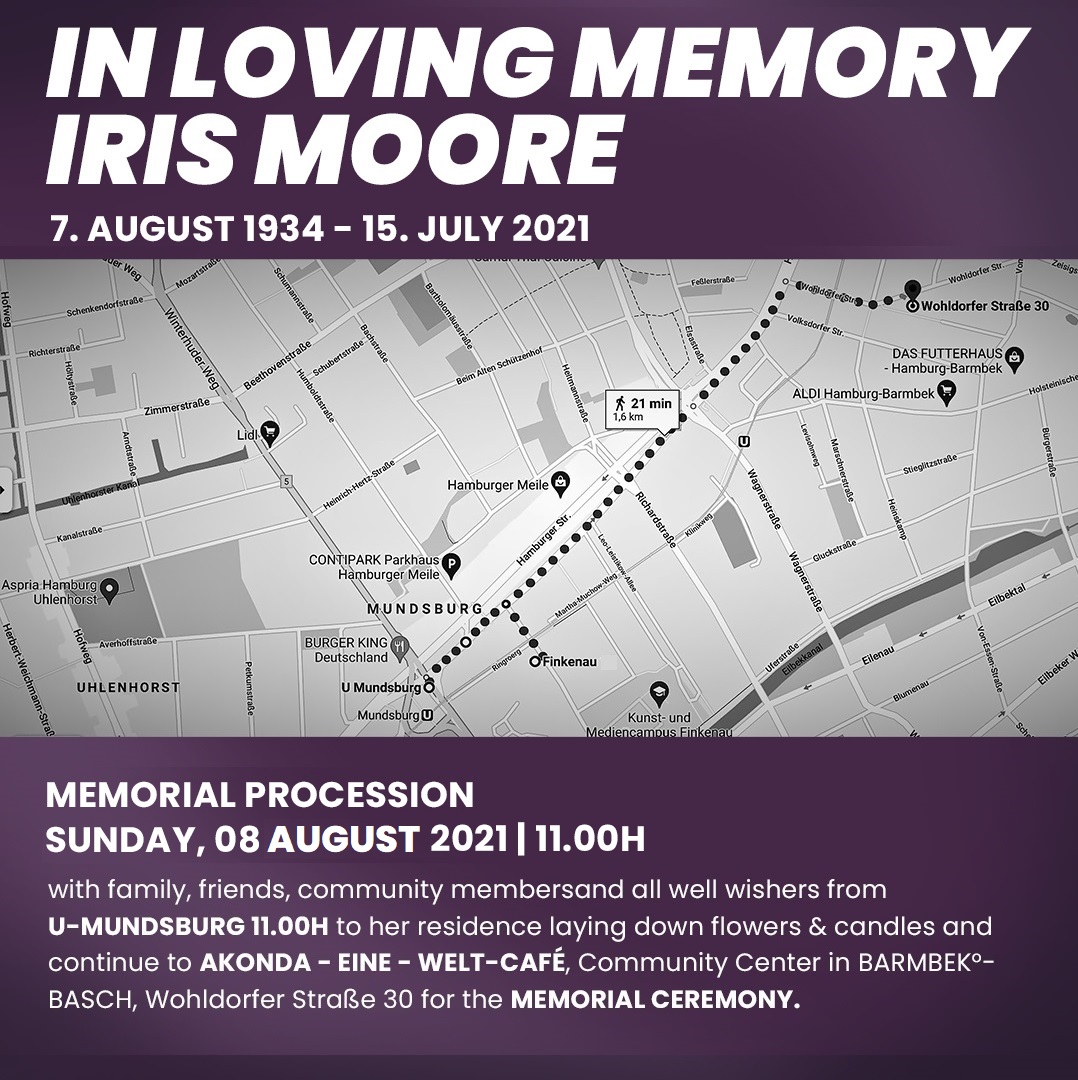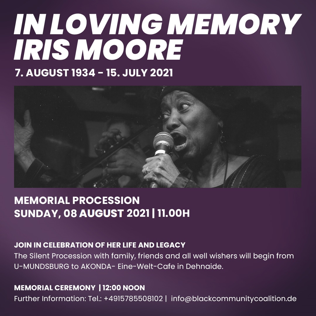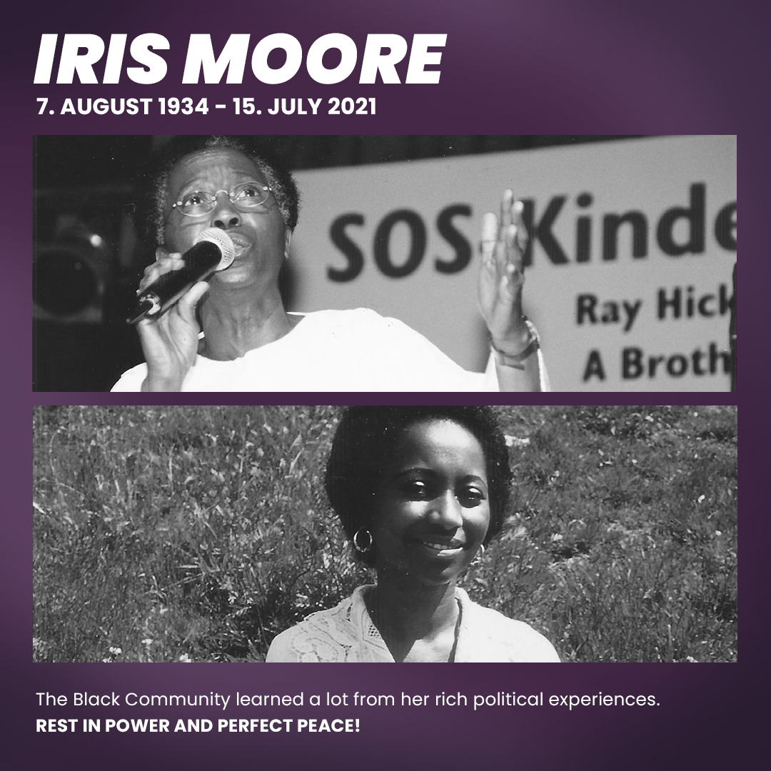 In recent years, Iris Moore was a crucial voice for the Black Community movement against the murders of Black people in Hamburg.