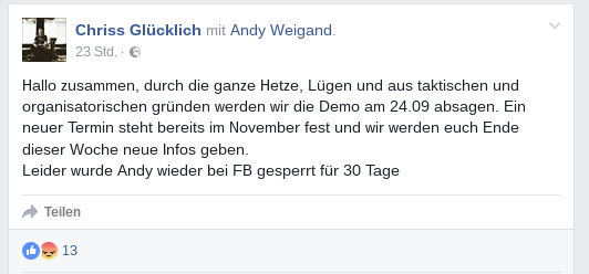 Sollten die Initiatoren des rechten Aufmarschs diesen tatsächlich auf November oder wann immer verschieben, müssen sie mit unserem vielfältigen Widerstand rechnen.