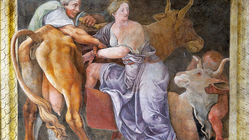Der Mythos von Pasiphae, der Frau, die sich von Daidalos eine künstliche Kuh bauen lässt, um sich mit einem Stier zu paaren, ist ein Paradigma der Technologie. In dieser Perspektive erscheint die Technologie als das Mittel, mit dem der Mensch versucht, die Animalität zu erlangen – oder wieder zu erlangen. Aber genau das ist das Risiko, das die Menschheit heute durch die technologische Hybris eingeht. Die künstliche Intelligenz, der die Technologie ihr äußerstes Ergebnis anzuvertrauen scheint, will eine Intelligenz hervorbringen, die wie der tierische Instinkt sozusagen von selbst funktioniert, ohne das Eingreifen eines denkenden Subjekts. Es ist die daidaloistische Kuh, durch die die menschliche Intelligenz glaubt, sich glücklich mit dem Instinkt des Stiers paaren zu können, indem sie zum Tier wird bzw. wieder zum Tier wird. Und es ist nicht verwunderlich, dass aus dieser Vereinigung ein monströses Wesen mit menschlichem Körper und dem Kopf eines Stieres hervorgeht, der Minotaurus, der in einem Labyrinth eingesperrt ist und sich von Menschenfleisch ernährt.