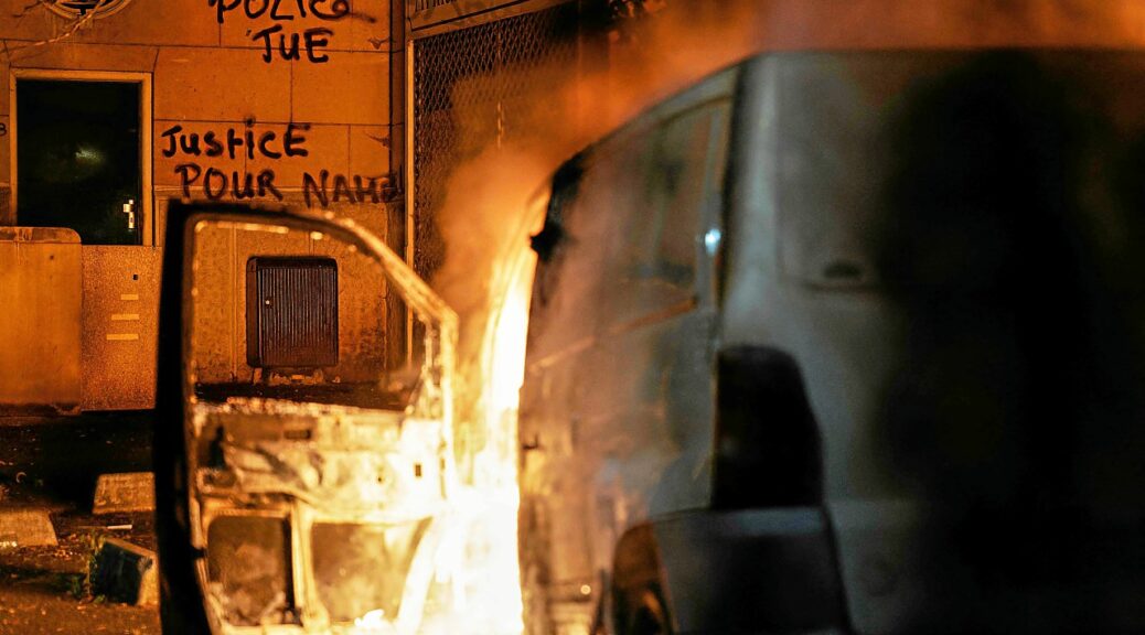 Eine weitere Lehre, die man aus dieser Stärke ziehen kann: Die Jugendlichen konnten 40.000 Polizisten nur deshalb in Schach halten, weil sie sich auf bereits vorhandene Kräfte stützen, die über die logistische Frage hinausreichen und die sich folgendermaßen zusammenfassen lassen: Gemeinschaft, Territorium, Organisation. Man darf dem Gejammer der einen oder anderen Seite nicht glauben: Die Revolte, die sich anbahnt, wird in den Arbeitervierteln breit getragen. Zwar werden die von den Jugendlichen eingesetzten Mittel in Frage gestellt, nicht aber die Entstehung einer Revolte nach diesem Mord. Die Jugendlichen, die auf der Straße sind, sind nicht besonders kriminell, und wenn sie sich der Polizei so mutig entgegenstellen, dann auch, weil sie sich alle mit Nahel identifizieren. Welchen Sinn hat es, in einem “republikanischen Pakt” zu leben, der die Tötung eines der eigenen Leute erlaubt?