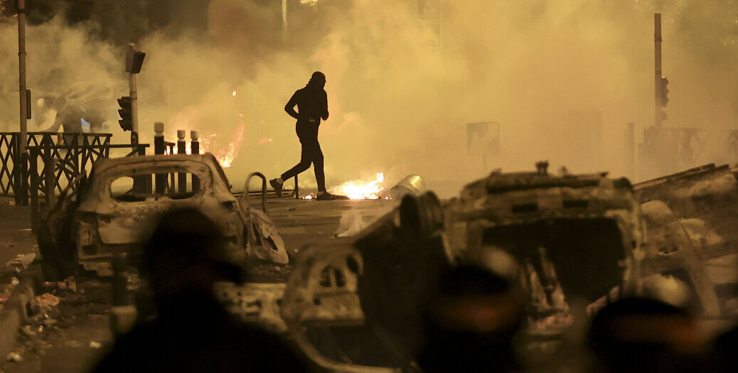 Das Ergebnis: die Verschärfung der Zusammenstöße in Intensität und Ausmaß allerorts. Der Rest ist eine Chronik des Aufruhrs… Viele Lagerhäuser werden gestürmt und Einkaufszentren geplündert. Polizeistationen wurden in Brand gesetzt. In L’Haÿ-les Rose wird die Residenz des Bürgermeisters mit einem brennenden Auto angegriffen. Gaskanister werden an Straßenkreuzungen als Flammenwerfer eingesetzt, Stadtmobiliar wird völlig verwüstet und Kameramasten werden mit Hilfe elektrischer Winkelschleifer abgerissen. Mit Kalaschnikows und Schrotflinten bewaffnete Personen in Marseille und in Limas. Einige wenige Polizisten scheinen ins Visier genommen worden zu sein, die sich allerdings mit kugelsicheren Westen retten konnten. “C’est une guérilla urbaine”: In Marseille ruft der Präsident der Arbeitgebervereinigung zu einer Ausgangssperre ab 20 Uhr auf. Außerdem: Autos werden als Rammböcke benutzt, um die Rollläden von Einkaufszentren zu öffnen. Paris, Lyon, Marseille und viele andere Städte…. immer wieder die Heimtücke kleiner, mobiler, schneller und gut organisierter Rebellengruppen, wie Fachleute betonen. Carl Schmitt, der die Figur des “Partisanen” historisch analysierte, argumentierte, dass “er [der Partisan] sogar eine technokratische Raserei provoziert. Das Paradoxe seiner Anwesenheit offenbart einen Kontrast: die technisch-industrielle Perfektion der Ausrüstung einer modernen regulären Armee gegenüber der vorindustriellen, agrarischen Primitivität der Partisanen, die ebenfalls effektiv kämpfen. Ein Kontrast, der schon Napoleons Wutanfälle gegen den spanischen Guerillero hervorgerufen hatte und der sich mit der fortschreitenden Entwicklung der Technologie noch verstärken sollte”.
