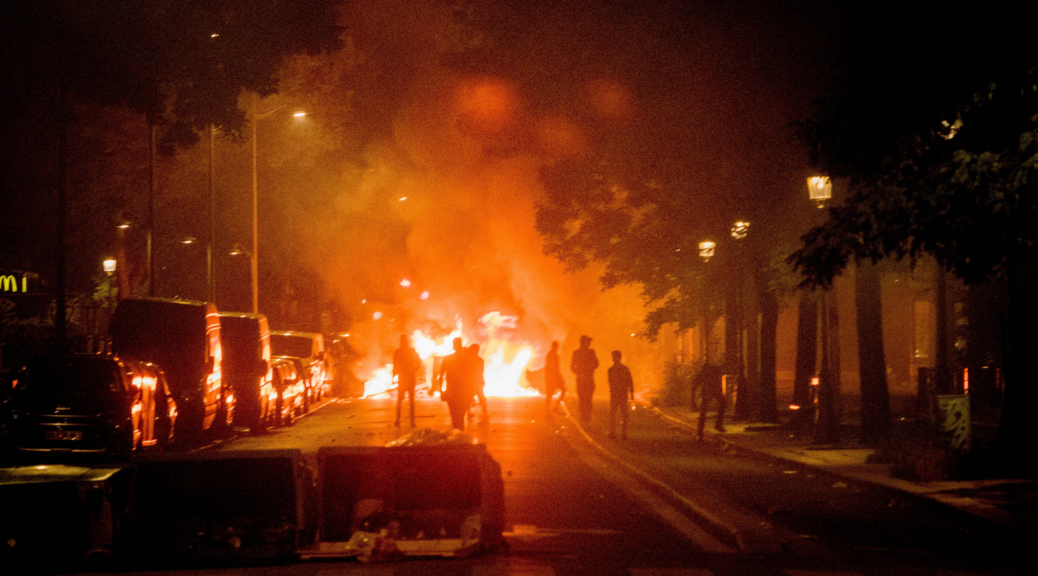 Wo sollen wir anfangen? Bei den Aberdutzenden von Bullenwachen, die wir gestürmt, verwüstet und in Brand gesetzt haben? Bei den tausenden von Geschäften, die wir spontan oder generalstabsmäßig gestürmt und leergeräumt haben. Bei den zahllosen Hinterhalten, die wir für die Bullen gelegt haben? Sollen wir davon berichten, wie die im Viertel allseits bekannten und berüchtigten Bullen der BAC endlich auf die Fresse bekommen haben? Sollen wir Euch davon erzählen, wie sie die Sondereinheiten in die Banlieue von Nanterre geschickt haben, und die sich aber auch im Geschosshagel unserer selbstgebauten Mörser zurückziehen mussten? Sollen wir Euch eine Liste der in Waffengeschäften und Bullenwachen erbeuteten Waffen zukommen lassen, damit Ihr uns endlich glaubt, dass wir uns nicht weiter von den Bullen abschlachten lassen? Nicht die Antiterroreinheiten haben Eurer Regierung den Arsch gerettet, sondern unserer Langmut und unsere Weigerung weitere Brüder begraben zu müssen.