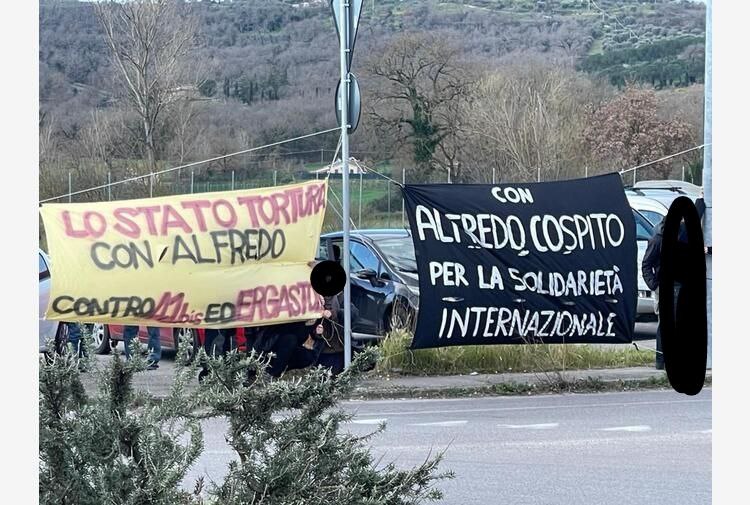 Die Entscheidung, den Verhandlungsort in den Bunkerraum des Gefängnisses Capanne zu verlegen, war ein offensichtlicher Versuch, die Solidaritätsinitiative mit Alfredo aus dem Stadtzentrum zu vertreiben. Dieses Ziel wurde nicht erreicht, denn nach der Anhörung versammelte sich die Solidaritätsgruppe erneut in der Mensa der Universität von Perugia, wo ein Transparent entrollt, Flugblätter verteilt und über eine Stunde lang mit dem Megafon gesprochen wurde.