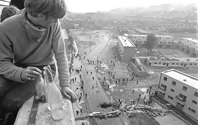 Eine völlige Umkehrung der Realität, bei der Sie die enormen Ungerechtigkeiten, vom Krieg bis zum Arbeitsplatz, nicht sehen. Sie haben eine halluzinierte Sicht auf die Welt: Diese Gesellschaft ist kein Paradies, sondern eine Hölle. Diejenigen, die rebellieren, tun dies, weil sie die Entschlossenheit entwickelt haben, dem Ganzen ein Ende zu setzen.