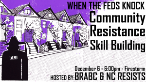 On December 6 there will be a a workshop and discussion about building community resiliancy in the face of state repression hosted by BRABC & NC Resists.