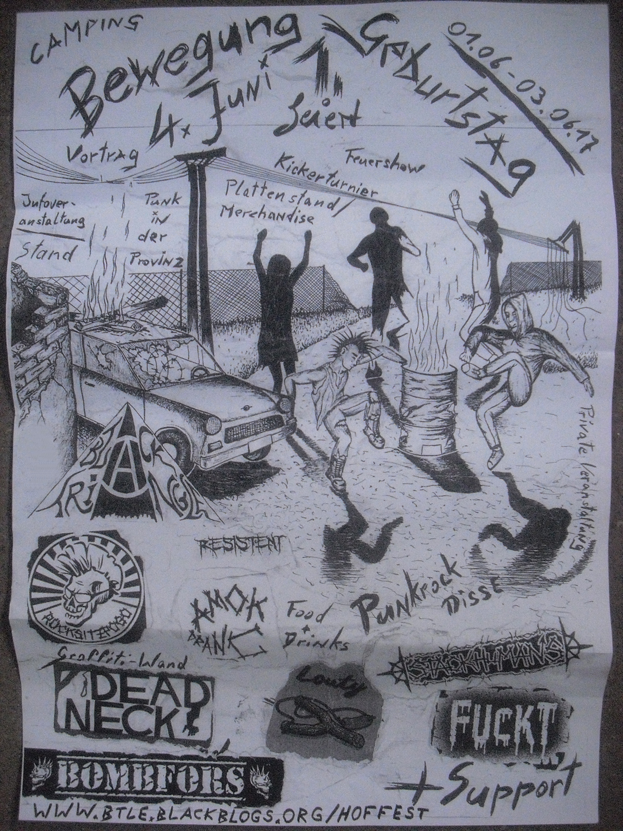 Seit über einem Jahr gibt es nun schon das Black Triangle. Anfang Juni 2016 besetzten wir das verfallene ehemalige Umspannwerk der Deutschen Bahn im Gleisdreieck an der Arno-Nitzsche-Straße 41f im Leipziger Süden. Seit dem ist einiges geschehen. Mit viel Schweiß und Mühe, aber stets den Traum vom selbstverwalteten Leben vor Augen, wurden wesentliche Gebäudeteile wieder Instand ge(be)setzt. Aus einer maroden Ruine mit undichtem Dach, für die sich ohnehin niemand seit beinahe drei Jahrzehnten interessierte, wurde günstiger Wohnraum weit weg von der Enge piefiger Mietverhältnisse und Reihenhausidylle mit Vorgarten geschaffen. Unser Haus diente dabei von Anfang an nicht nur als Obdach für uns Besetzer*innen, sondern sollte auch für all jene, welche sich an dem Projekt beteiligen wollen, den Raum zur freien Gestalltung ermöglichen. So entstand unter anderem ein Sportraum, ein Kino, Werkstätten, Veranstaltungsraum samt Bar für Konzerte, Vorlesungen, Workshops und Vorträge, eine Sauna und vieles mehr. Alles zur freien Nutzung ohne kommerziellen Hintergedanken. Wer Ideen hatte, der konnte sie hier im Kollektiv verwirklichen. Und dieses Angebot wurde angenommen, was eine ganze Reihe von gut besuchten Konzerten, Partys, Vorträgen und Lesungen, die regelmäßig stattfindenden VoKüs und die genannten (Aus)Baufortschritte zeigen. Continue reading