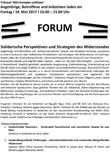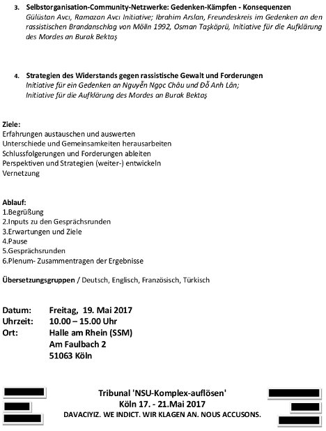 Homepage des Tribunal ‘NSU-Komplex-auflösen’ 17. bis 21. Mai in Köln