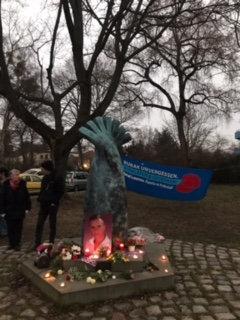 Wir danken Euch, dass ihr immer wieder an diesem Ort mit uns zusammenkommt und die Erinnerung an den Mord und die vielen anderen Taten aufrechterhaltet.