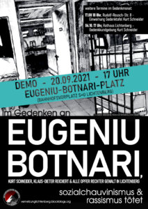 Ein rassistisches/rechtes Motiv wollten Richter und Staatsanwälte trotzdem nicht erkennen. Sie haben den Mordprozess entpolitisiert – die Tat wurde zu einem „Mord ohne Motiv“. Aus dem Mörder wurde verharmlosend ein “Waffennarr”, ein “Alkoholiker mit Sammelleidenschaft” und natürlich ein “Einzeltäter” vor dem Landgericht Berlin-Moabit. Auch einem möglichen Zusammenhang zum Mord an Burak Bektaş wurde nicht nachgegangen.