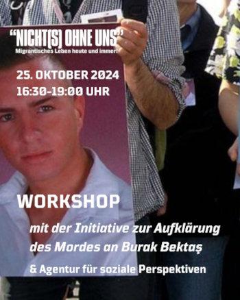 In dem Workshop berichten die Initiative zur Aufklärung des Mordes an Burak Bektaş und ASP von ihrer Arbeit und aktuellen Entwicklungen in Bezug auf den Neukölln-Komplex.