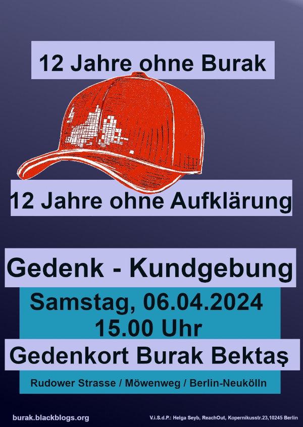 Aufruf zur Kundgebung am 6.4.2024 – 12 Jahre ohne Burak – 12 Jahre ohne Aufklärung