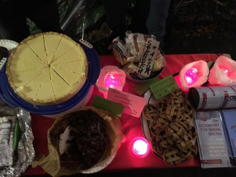 Den Gedenkort Burak Bektaş finanzieren wir selbst und sammeln deshalb Spenden. Wir haben noch nicht alles Geld zusammen, damit das Denkmal tatsächlich am nächsten Jahrestag des Mordes, am 5. April 2018 fertig werden kann. Also, falls ihr Geld übrig habt, wir können es gut gebrauchen.