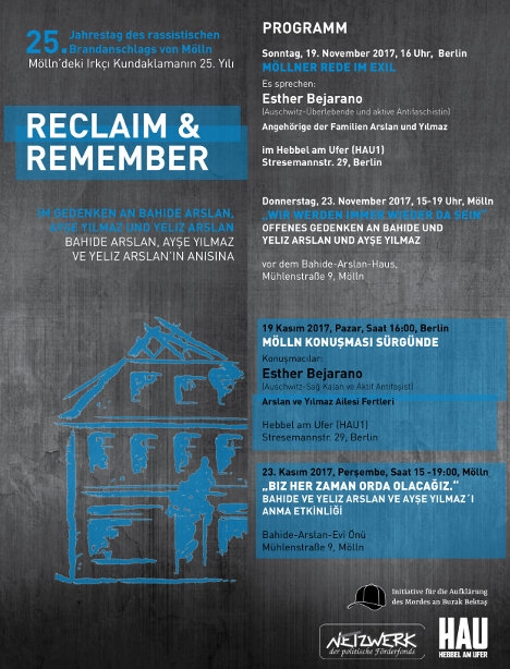 Am 23. November 2017 jährt sich der mörderische Brandanschlag von Mölln zum 25. Mal. Am 23. November 1992 starben die 51jährige Bahide und die 10jährige Yeliz Arslan sowie die 14jährige Ayşe Yilmaz, nachdem zwei bekannte Neonazis das Wohnhaus der Familie Arslan in Brand gesetzt hatten.