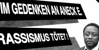 Wir rufen euch zur So­li­da­ri­tät mit der Fa­mi­lie, sowie mit den Freun­din­nen und Freun­den von Aneck auf. Lasst uns ge­mein­sam Aneck ge­den­ken. Wir sind nicht be­reit hin­zu­neh­men, dass der Mord an Burak und der Tod von Aneck un­auf­ge­klärt bleiben. Wir wer­den nicht zum All­tag über­ge­hen, son­dern an Anecks Tod er­in­nern und seine Auf­klä­rung for­dern. Heute und auch in Zu­kunft.