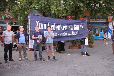 Am 5. September 2014 werden wir am Kottbusser Tor in Kreuzberg eine Mahnwache abhalten. Noch immer ist der Mord an Burak ungeklärt. Noch immer gibt es keine Ermittlungsergebnisse. Wir fordern weiterhin, dass aufgrund der vorliegenden Hinweise gezielt in Richtung eines rassistischen oder neo-nazistischen Verbrechens ermittelt wird.