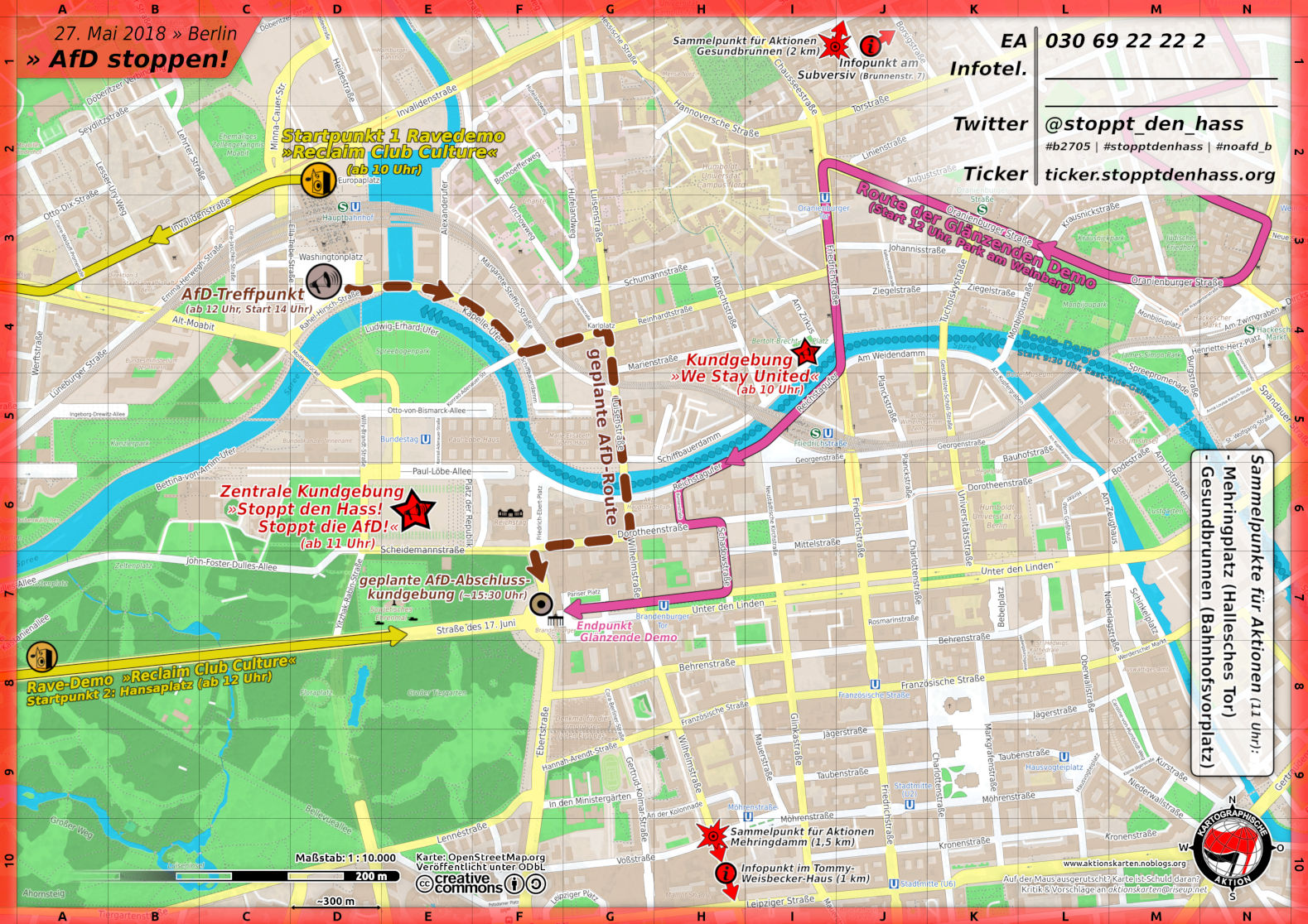 Unserem Aufruf, sich dem AfD-Großaufmarsch am 27. Mai unversöhnlich gegenüberzustellen, sind eine überschaubare Anzahl Aktive gefolgt. Eine Dynamik hat sich nicht entfaltet. Das liegt einerseits an dem Gesamt-Protestbild an dem Tag (tausende feiern das bessere Deutschland gegen eine AfD) und andererseits an der fehlenden Motiviation und der mangelnden Aktionsfähigkeit der Berliner Zusammenhänge. Dennoch fanden wir es gut mal wieder einen Punkt zu setzen, um den Horizont zu erweitern. Was ist also gelaufen?