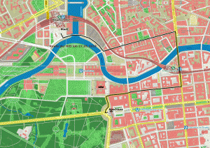 Washingtonplatz- Hugo-Preuß-Brücke – Kapelle-Ufer – Reinhardtstr. – Luisenstraße – Marschallbrücke – Wilhelmstraße – Dorotheenstr. – Ebertstraße – Platz des 18 März