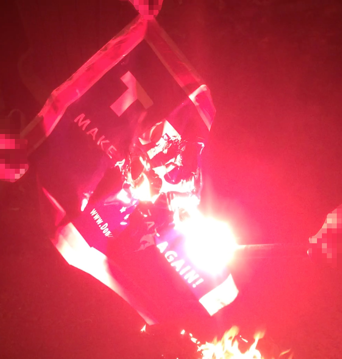 This Fourth of July season, several Minnesota residents celebrated without their flag, and it is possible that those flags made their way to our torch. We also set fire to a Trump lawn sign which is something rare in the metropolitan area. We appreciate the hard work of anti-racists everywhere who have made the public support of Donald Trump a risky endeavor. However we found one person who hadn’t yet gotten the memo.
