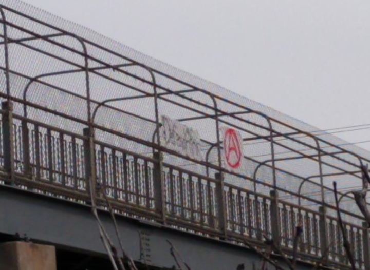 This time we met, masked up and marched behind a banner featuring a flaming cop car with only the word “yes!”, which was a reference to a banner made and marched behind during the Trump inauguration protests that was a black sheet with only the word “no.” painted on. There’s a little conversation going on here between the two. One emphasizes negation and another affirmation. As revolutionaries we must bow to both. We always contain within us the power to say as Bartleby did “I’d rather not” or “not this time mother fuckers!” We must also affirm what is vital, what is worth living for, what is unique and different according to our taste, and importantly the how of our ethical dispositions. The mobile sound system played pop music and anti-police hip hop. Sometimes this interfered with the sound of the speeches, sometimes it cut through the silence, sometimes it set the tone. Though small, these were attempts to add an open and unruly energy to the event, which the organizers work hard to contain and thwart. Even the peace police sensed a potential (if only symbolic), as one young man nervously and sadly stood arms outstretched between a few in bloc and a police car as we flicked the police off and a few minutes later between us and a wall to prevent the wall from being sprayed, while we weren’t even considering it. They think anything is possible, we simply need to give belief materiality.