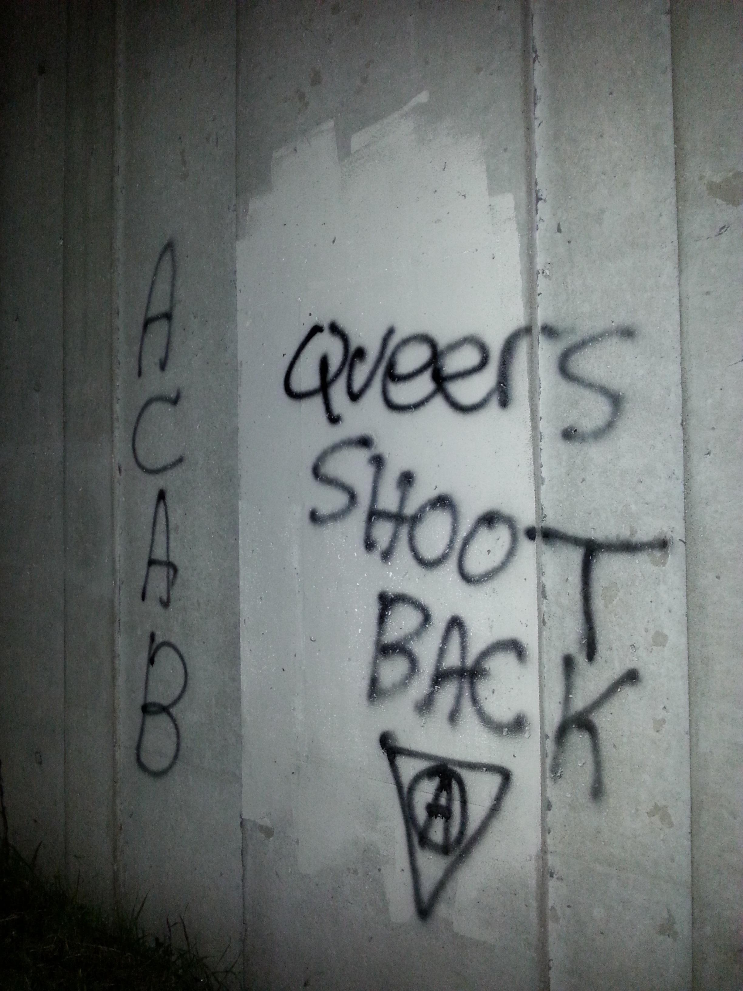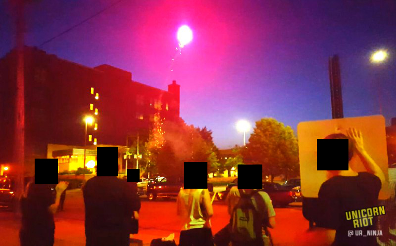 At 8pm, answering the call for a noise demo in solidarity with the September 9th prisoner’s strike and to commemorate the 45th anniversary of the Attica uprising, people gathered in Elliot Park preparing to march on the juvenile detention center. A small black bloc arrived, carrying a banner that read “FIRE TO THE PRISONS” and began marching through the park. Flyers were handed out along the way to some of the people gathered at the park for a barbecue and to play soccer. Once we took the streets, construction barricades were dragged into the street to block them off for the march and to slow down any advancing police. We arrived at the youth jail after passing by the obnoxious new Vikings stadium and got some shouts of approval from skateboarding teenagers who even briefly joined us in shouting “Fuck 12!”