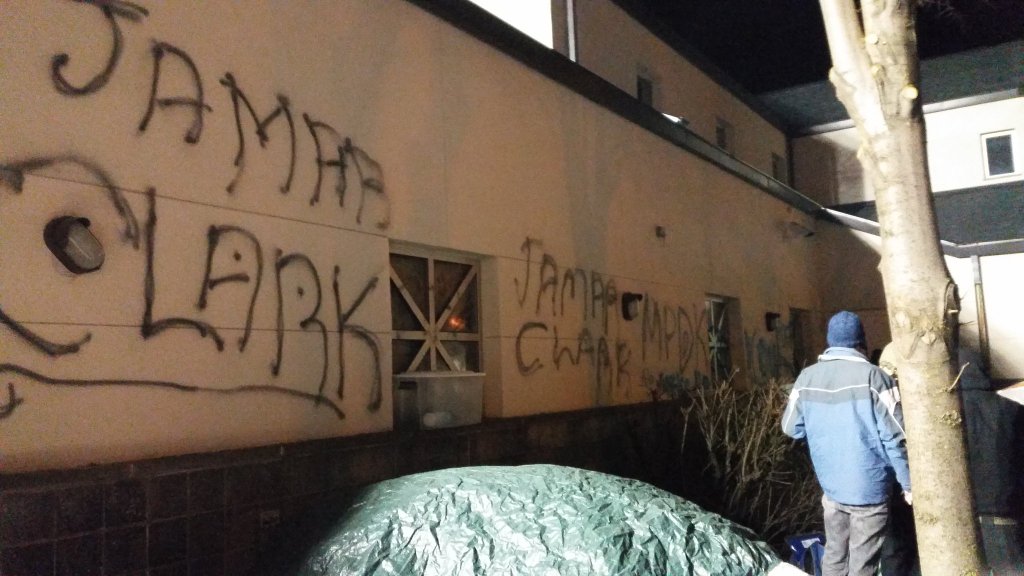 They were not entirely successful, as the precinct was decorated by multiple graffiti writers. The police responded by shooting more marker rounds into the occupation. Two men were later arrested, accused of being the vandals (more info to come on legal support.)