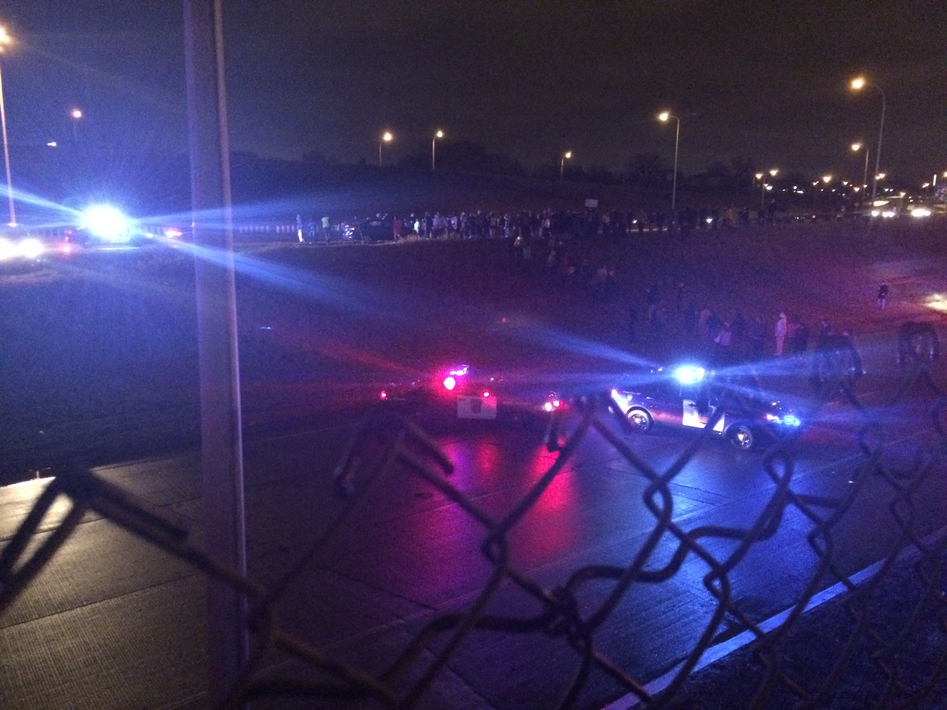 Even given the impromptu and unorganized nature of the late march, Black Lives Matter marshals remained in control. Directing traffic, regulating how many lanes we were allowed to take up; ensuring everyone’s safety, as they might put it. These protest marshals have been a constant feature of actions put on by Black Lives Matter and other affiliated organizations, and most of the time can be recognized by their yellow vests. As the Conflict MN blog has pointed out already, these marshals act as an extension of the police, even if they don’t quite realize it.