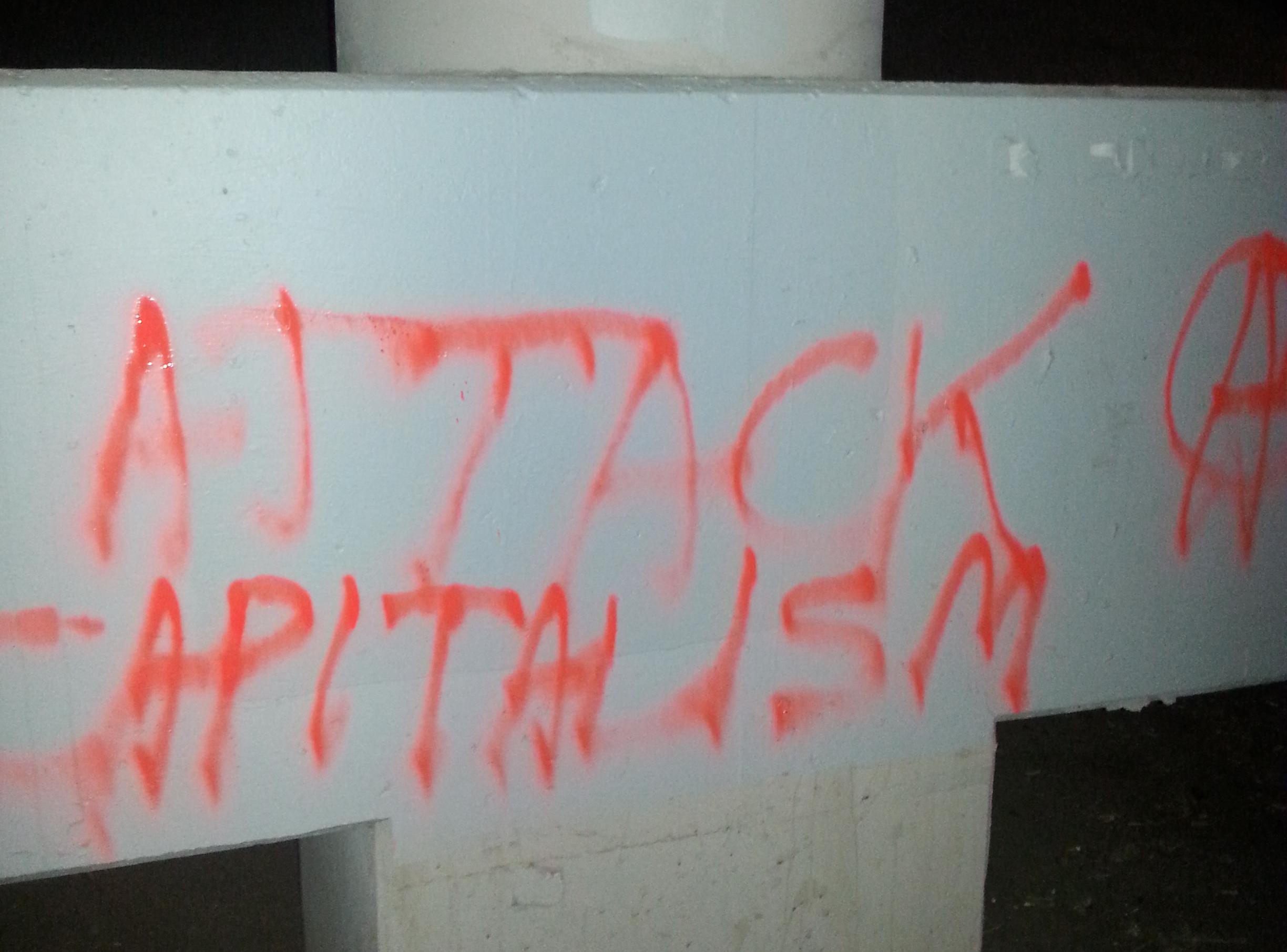 Solidarity with the arrested anarchists in Seattle, Chicago, and everywhere else! Rest in power to the protester killed in Taksim Square! Fuck police repression, fuck the state, and fuck capitalism. Solidarity means attack, fuck the civil let’s get disobedient!