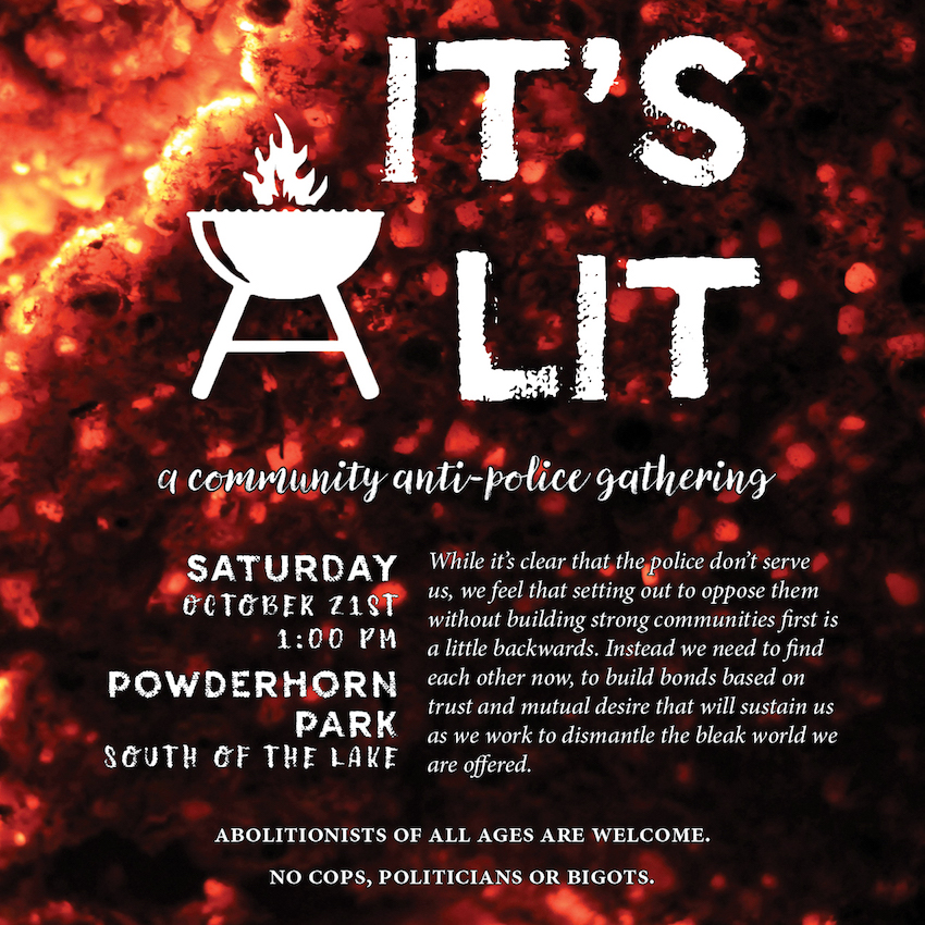 It’s obvious that the police don’t serve us, and never could. The very idea is like trying to cure a headache with a hammer. Many have worked together over the past years to push back against these modern day slave-patrollers, and have been met with varying degrees of success. However, we can’t help but feel that setting out to oppose the police with the hope of building strong communities after they have been abolished is in some ways a little backwards. Instead we need to find each other now, to build bonds based on trust and mutual desire that will sustain us as we work to dismantle the bleak world we are offered. Otherwise any oppressors we manage to drive off will eventually be replaced by a new class of managers eager to represent, restrain, and ultimately repress us.