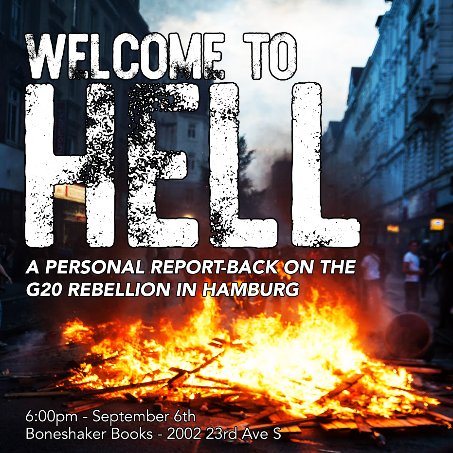 On September 6th, a guest present in Hamburg will offer a personal report back from the unrest along with tactical and strategic lessons gained from the experience.