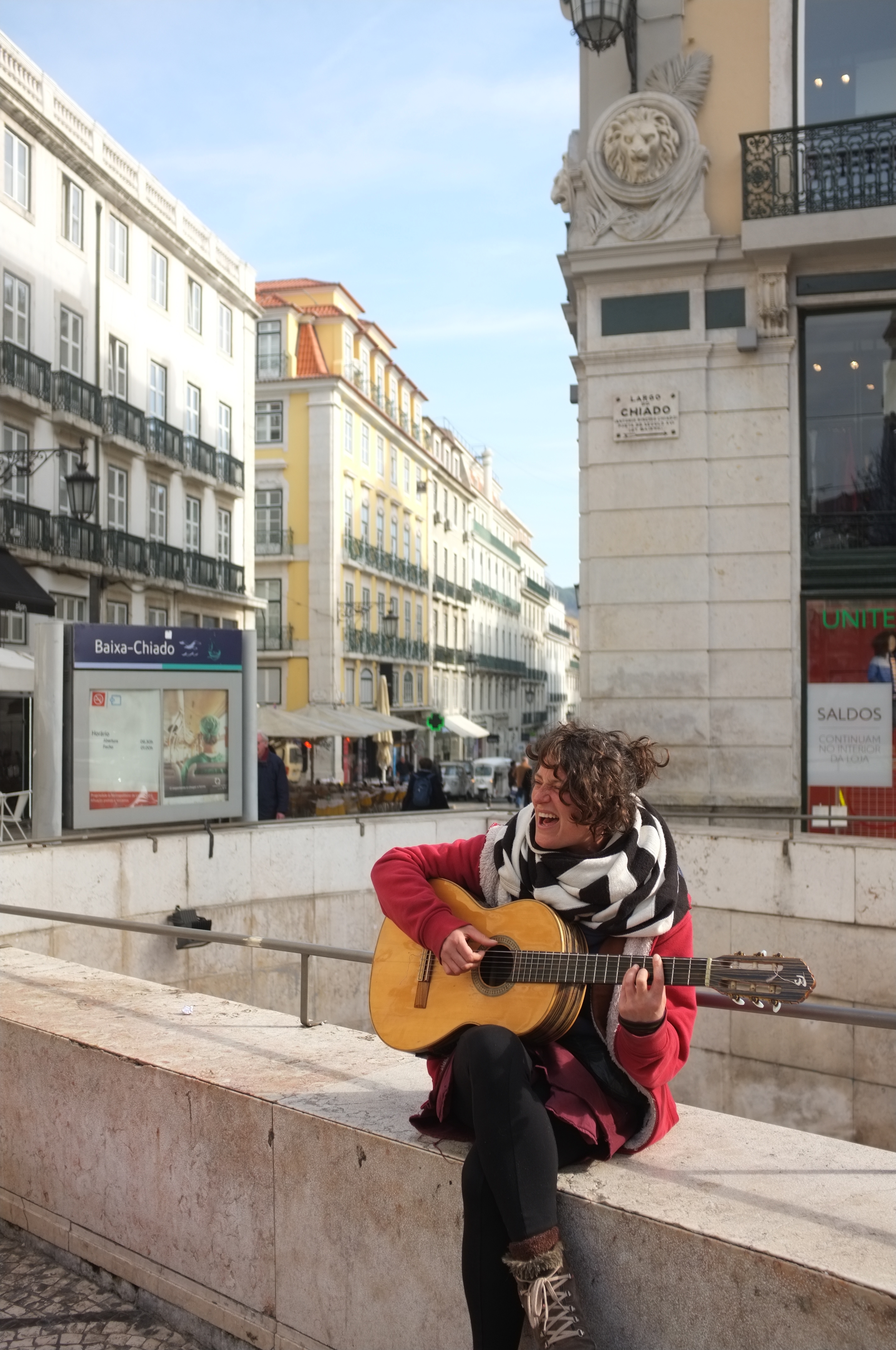 Suzanne devant le castillo San Joan et Manon a la sortie du metro….a Lisboa.