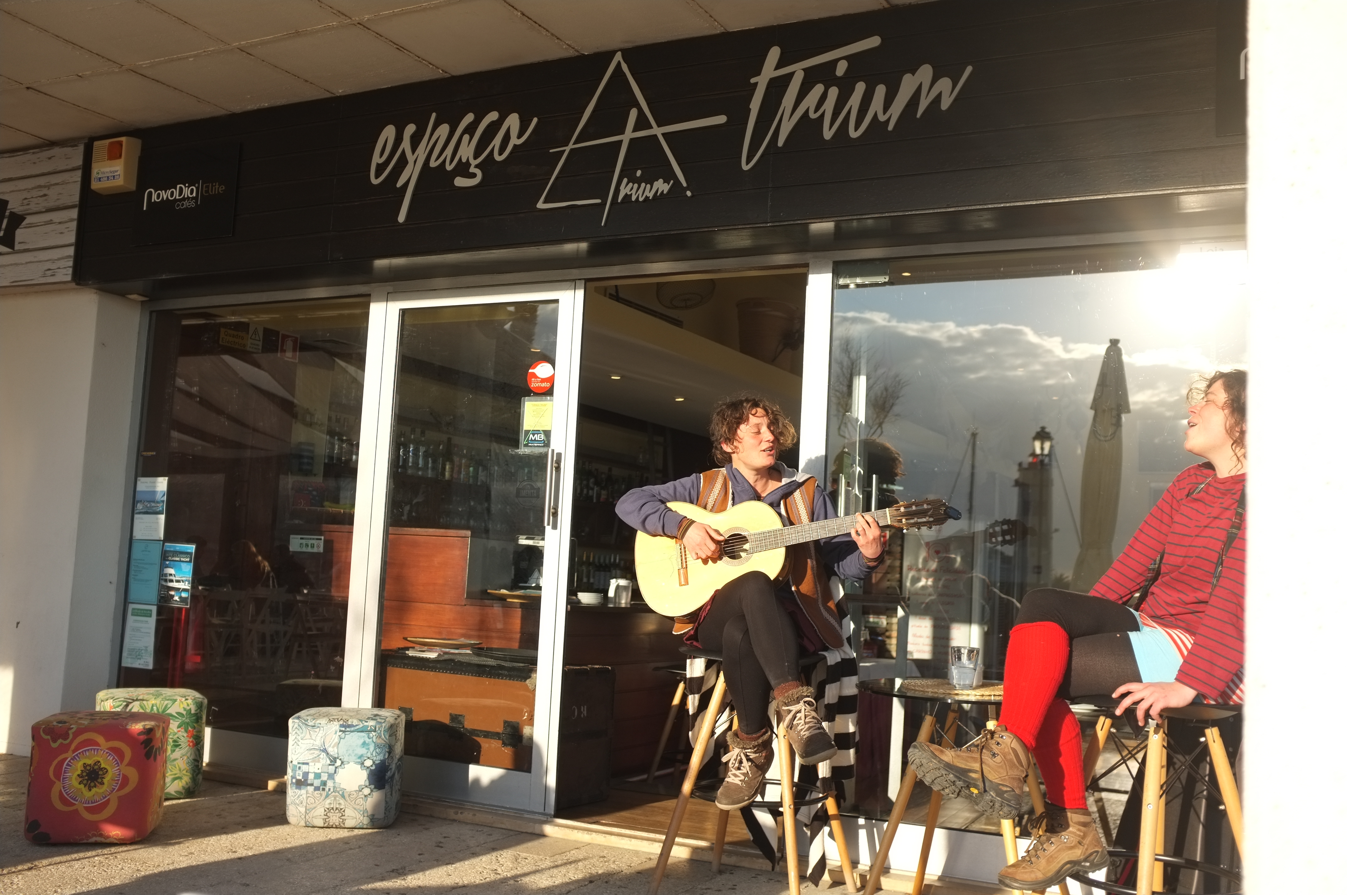 Devant le bar des tatas bresiliennes de Cascais….quelques sous et un repas de foufou offert par la maison. que du bon!