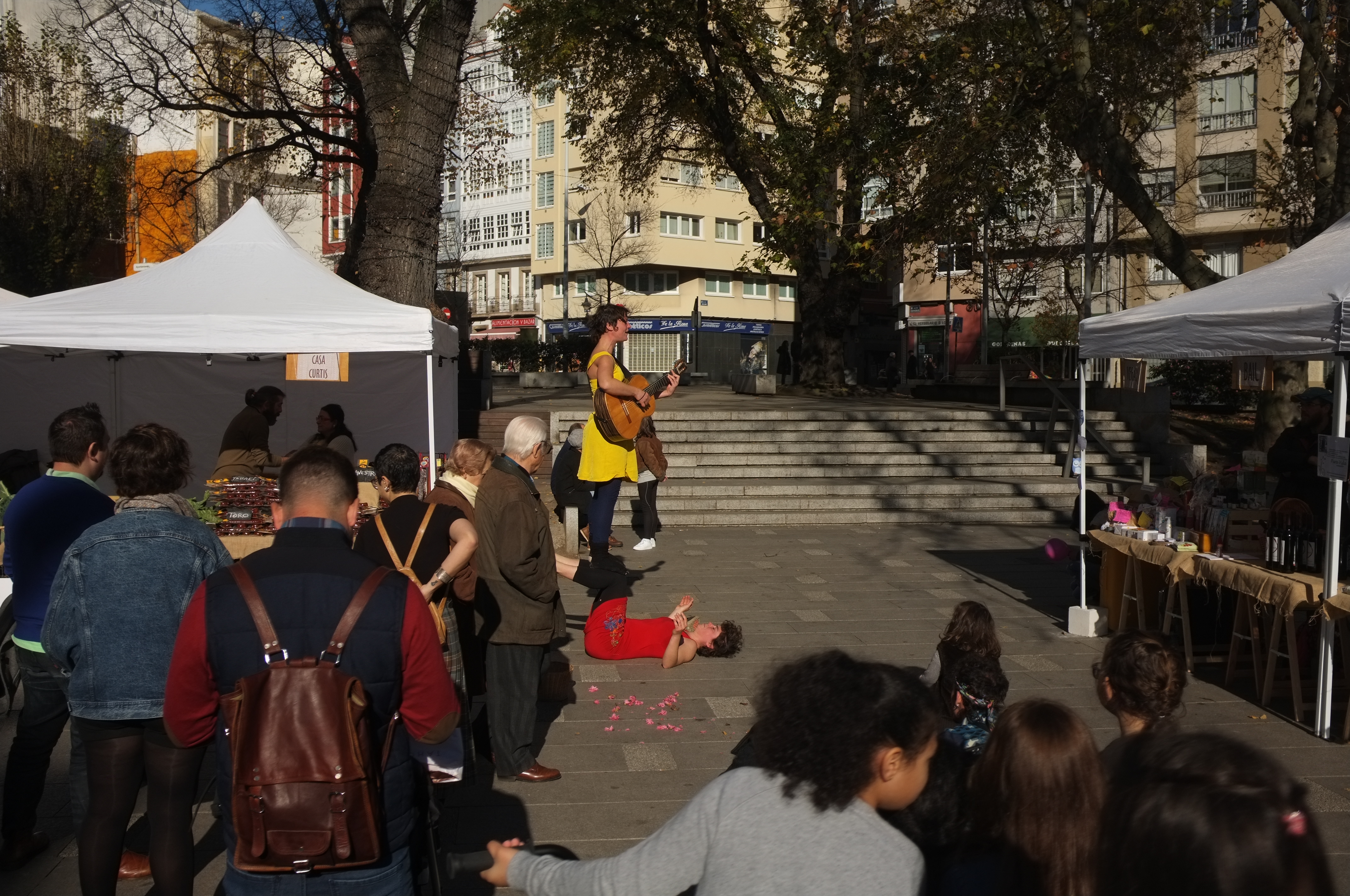 Plusieurs hésitations, une journée complete a Gijon : la mer pour notre première baignade, la ville et surtout la rencontre avec Esteban le magicien, qui nous a prises en stop après que nous ayons passé la nuit dans un bosquet à la sortie de Leòn. Rencontre magique s’il en est…et édifiante, car nous avons pu assister à son spectacle et observer comment il se débrouillait pour jouer dans la rue…
