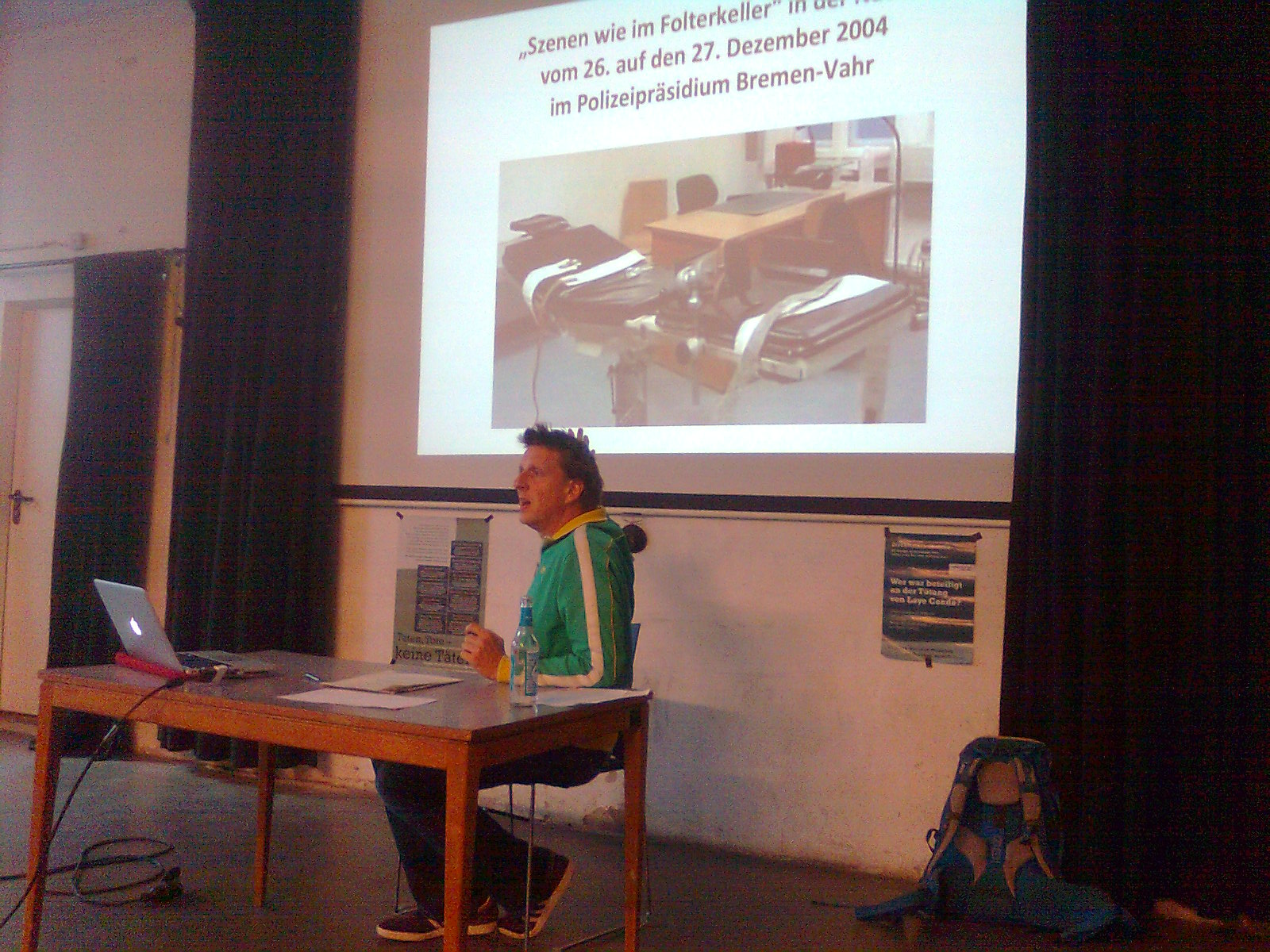 Der Vortrag der Initiative in Gedenken an Laye Condéhttps://initiativelayeconde.noblogs.org/ war sehr eindrücklich und macht nachdenklich. Zum Einen war da die genaue Schilderung des Brechmitteleinsatzes in Bremen von 1991 bis 2004 am Beispiel des Einsatzes gegen Laye Condé. Bedrückend dabei, wie häufig in diesem Einsatz die Polizei oder der Arzt sich dafür entschieden die Brechmittelfolter über Stunden immer wieder fortzusetzen, obwohl Condé kollabierte und nur mit Mühe am Leben gehalten werden konnte. Bedrückend auch, das diese Praxis mehr als 1000 Mal in Bremen durchgeführt wurde, auch noch nach dem Tod von Achidi John in Hamburg. Bedrückend darüber hinaus die Kumpanei des Bremer und Hamburger Brechmittelkomplexes, die sich gegenseitig deckten. So sagte Klaus Püschel, der die Brechmitteleinsätze in Hamburg zu verantworten hatte, als Gutachter bei Prozessen zu Bremer Brechmitteleinsätzen aus. Und ähnlich wie in Hamburg wurde nie jemand für die menschenverachtende Brechmittelfolter zur Verantwortung gezogen. Keine Polizeibeamten, keine beteiligten Ärzte keine Politiker_innen. Wie in Bremen sind die meisten Akteure heute noch Amt und Würden, wie der Hamburger Innensenator Scholz, der heute erster Bürgermeister ist oder der ehemalige Bremer Innensenator Thomas Röwekamp der heute Chef der CDU Fraktion in der Bremer Bürgerschaft ist, die Liste ließe sich lange fortsetzen.